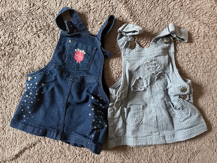 🩵 Lot 2 salopettes bébé en jean - 1/3 mois - Vertbaudet & Kiabi