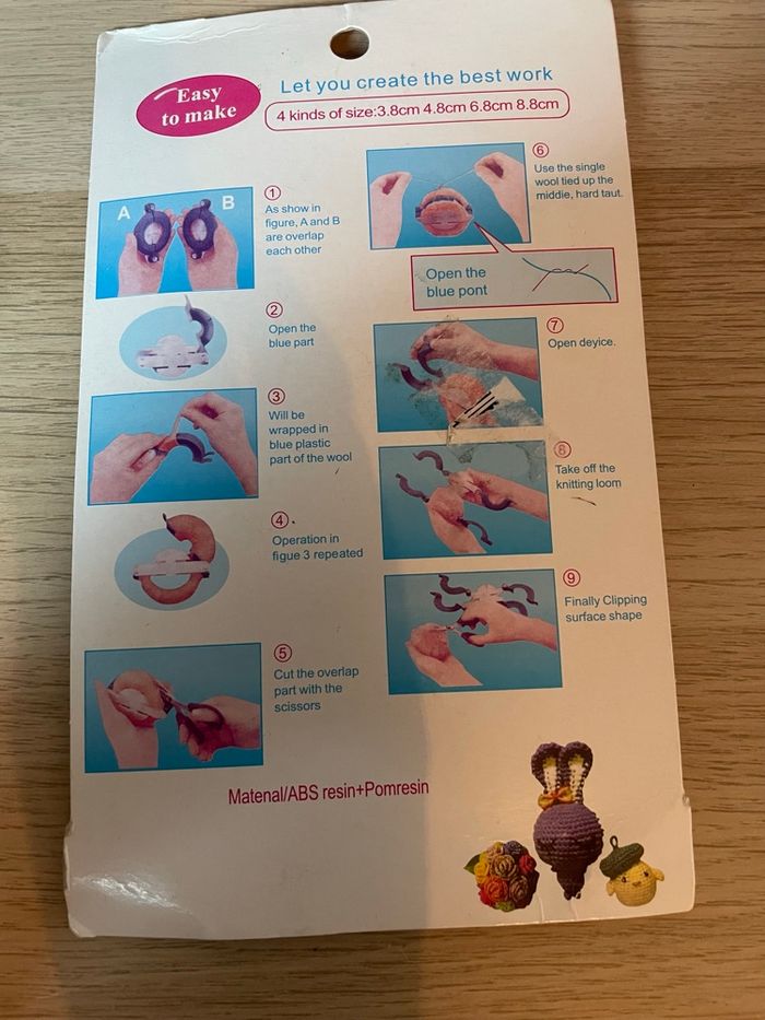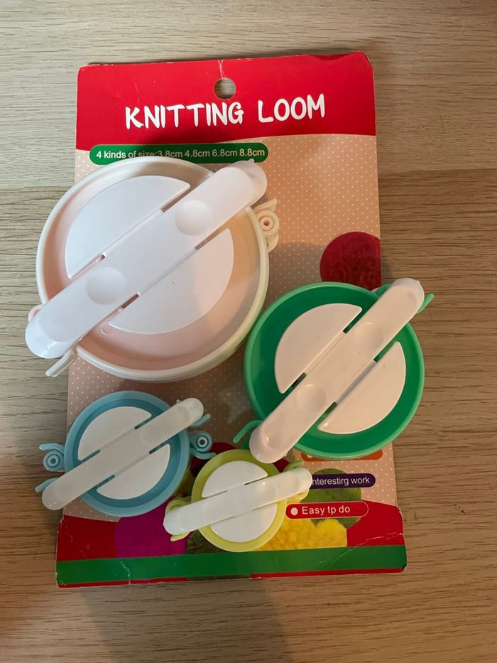 Kit pour fabriquer des pompons de 4 tailles différentes, en très bon état.