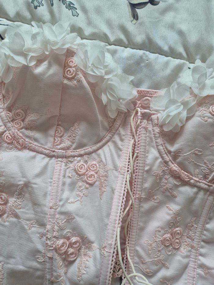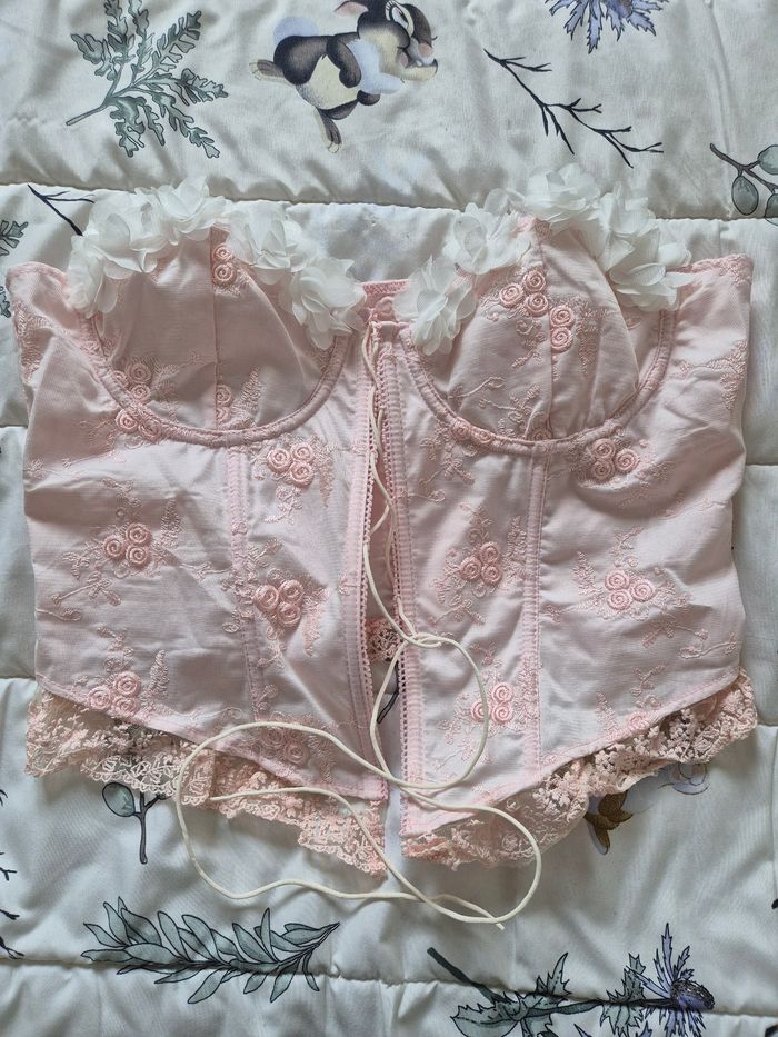 Corset taille L Rose avec des fleurs et des détails en dentelle Jamais portée car trop petit De la marque fleur et compagnie