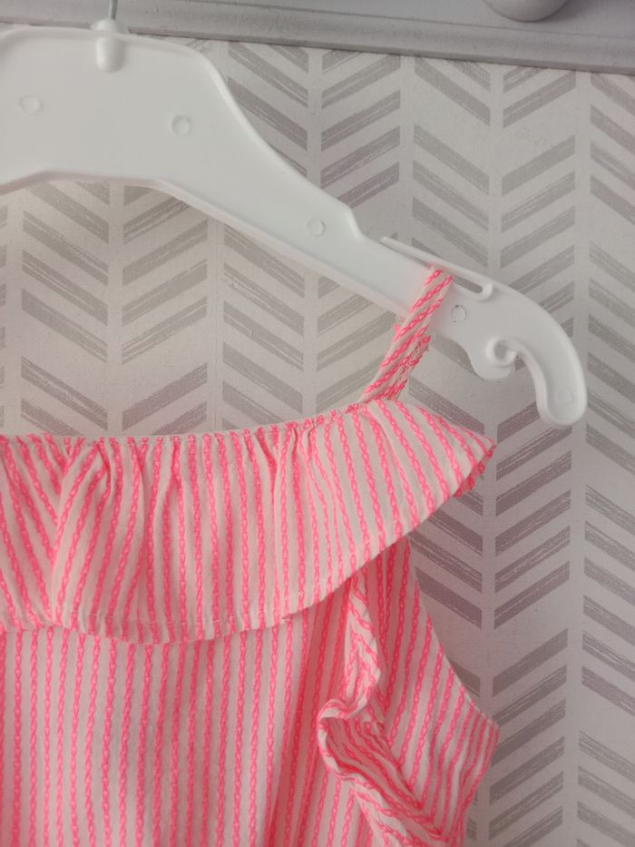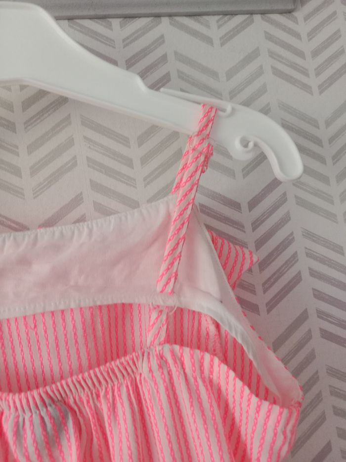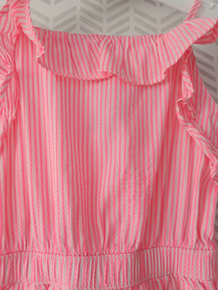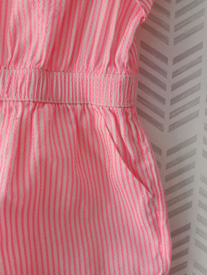 Combishort à bretelles, couleur blanche et rayures fuchsia, 2 poches devant. Sergent Major taille 4 ans