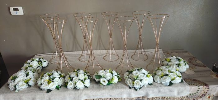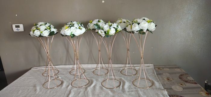 Je vends centre de table il y a 8 centre de table il y a 8 bouquets de fleurs 🌸 a 150€ il sont neufs j'ai utilisé une seule fois pour une fête