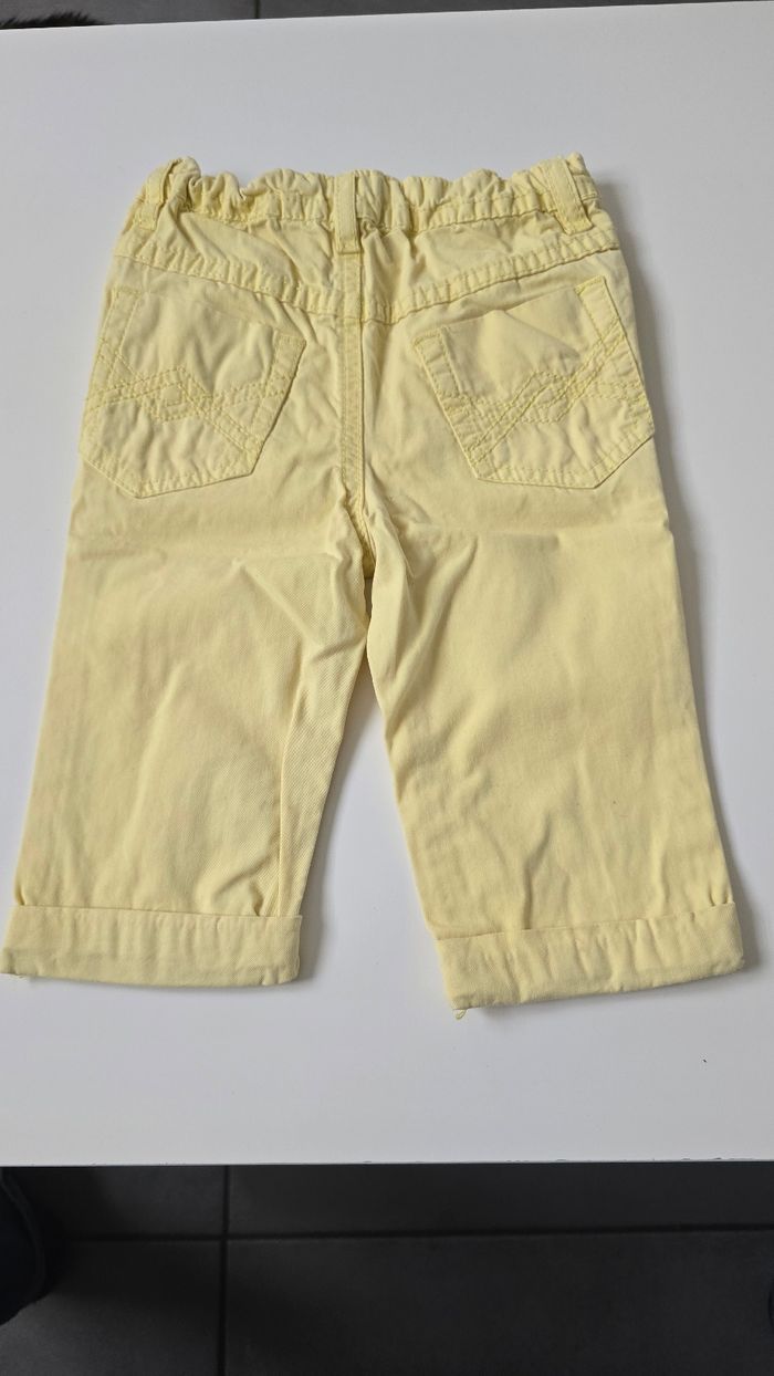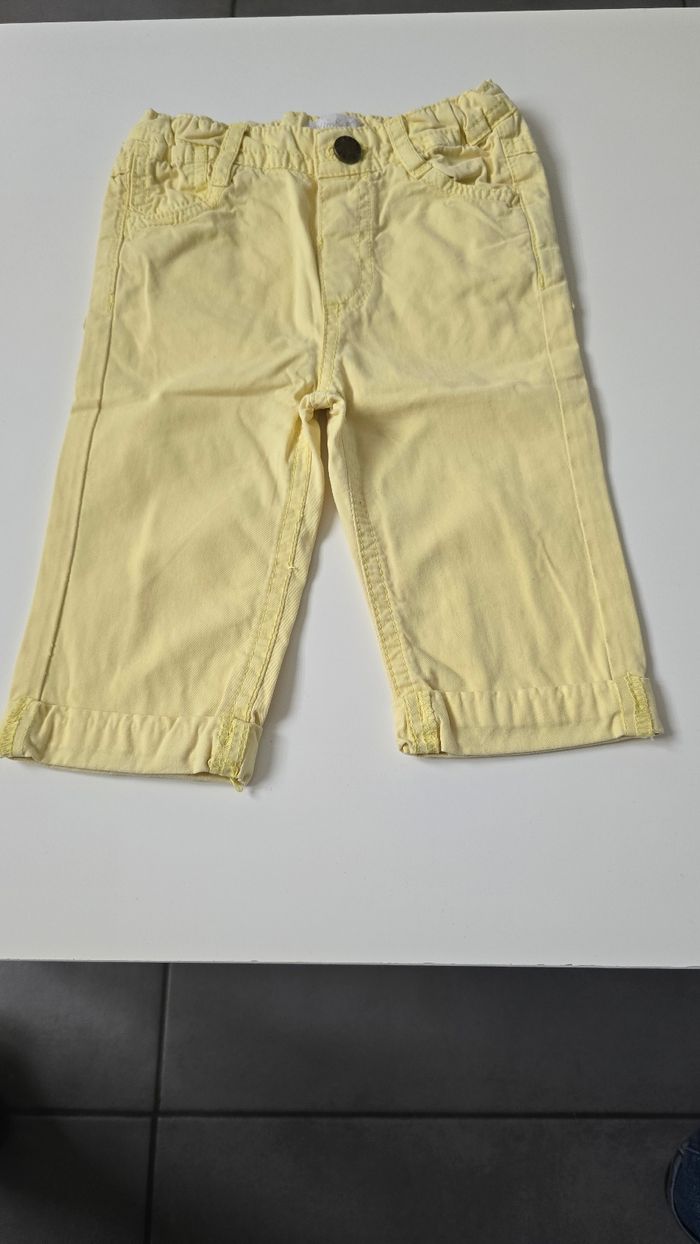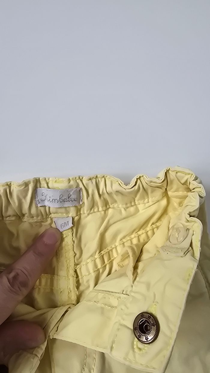 Pantalon pour fille avec bouton et taille réglable. Quatre poches et une mini. Marque Kimbaloo. Taille 6 mois. Bon état.