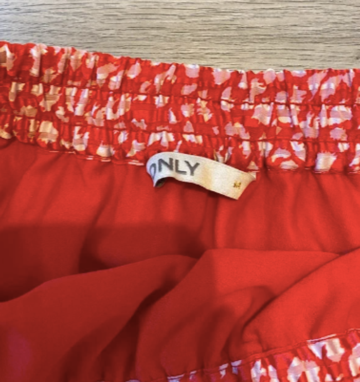 Mini jupe fluide de la marque Only, à motif léopard blanc sur fond rouge éclatant. Coupe à volants avec taille élastique, féminine et confortable, idéale pour la saison estivale. 🔹 Taille : M (38 / UK 10 / US 6) 🔹 État : très bon état 🔹 Matière : tissu léger avec fils incrustés irisés 🔹 Couleur : rouge et blanc Pièce tendance et pétillante, parfaite pour un look estival casual ou habillé selon les accessoires. À porter avec un top uni, des sandales ou des baskets pour un style moderne et coloré. 📦 Envoi rapide & soigné 📍 Remise en main propre possible sur Merlimont / Stella Plage / Amiens 💬 N’hésitez pas à me contacter pour plus d’infos ou photos 🤑 Réductions disponibles sur les lots