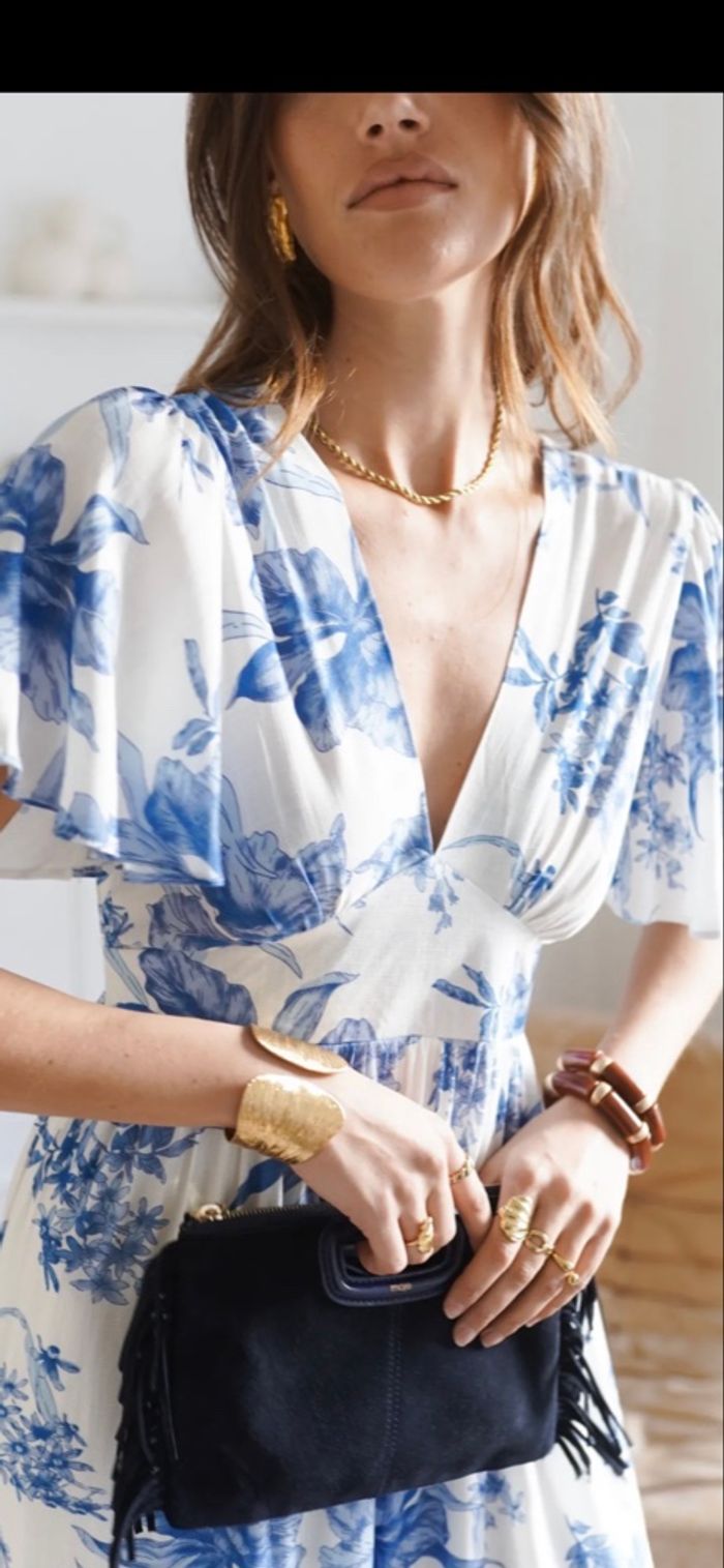 Robe d’été fleurie bleu pastel - Taille 34 XS