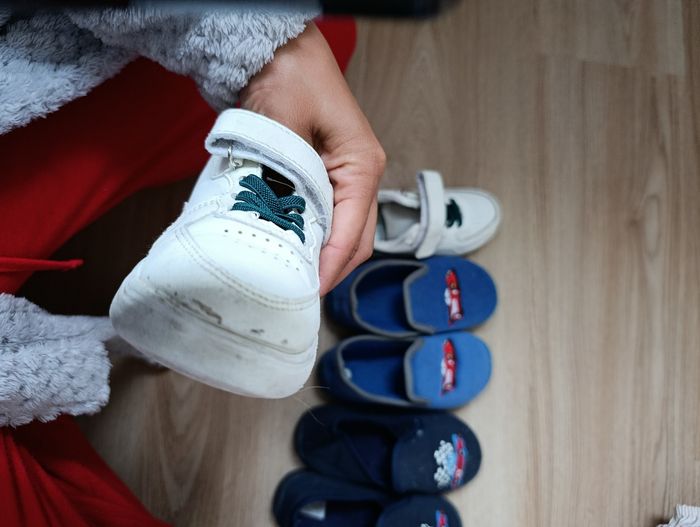 Lot de 2 paires de chaussons taille 26 Je rajoute une paire de basket offerte car petite égratignures devant la chaussure Taille 26 aussi