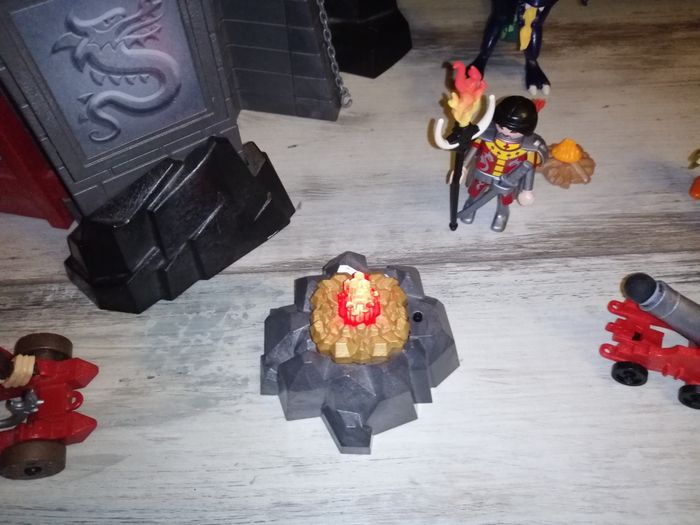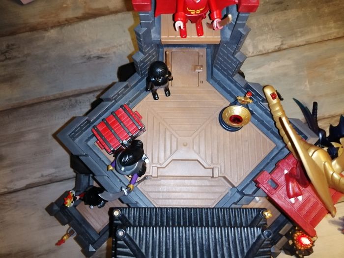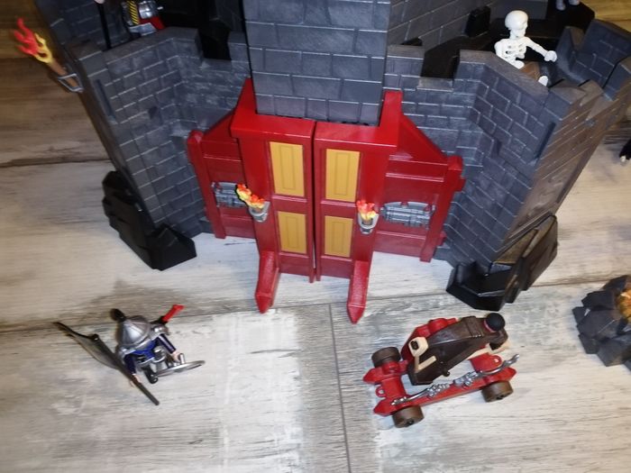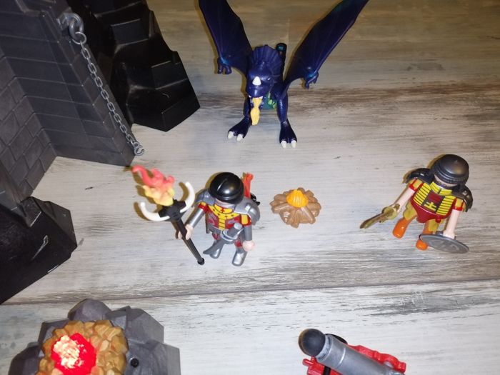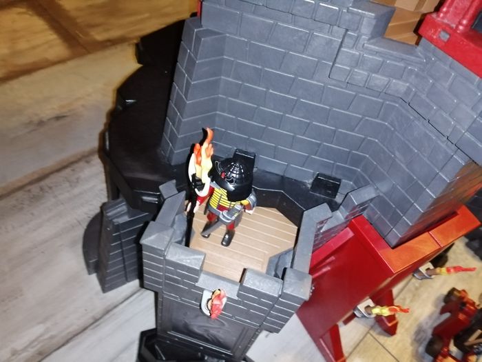 Playmobil 5479 Château du dragon rouge Grand Château de chevaliers Playmobil du Dragon noir combattants - personnages : - Dragons : - arbalètes avec leur flèches etc.......... - beaucoup d'accessoires : boucliers, armes, casques… Playmobil Château Playmobil Chevalier Playmobil Dragon Château de Chevaliers Playmobil