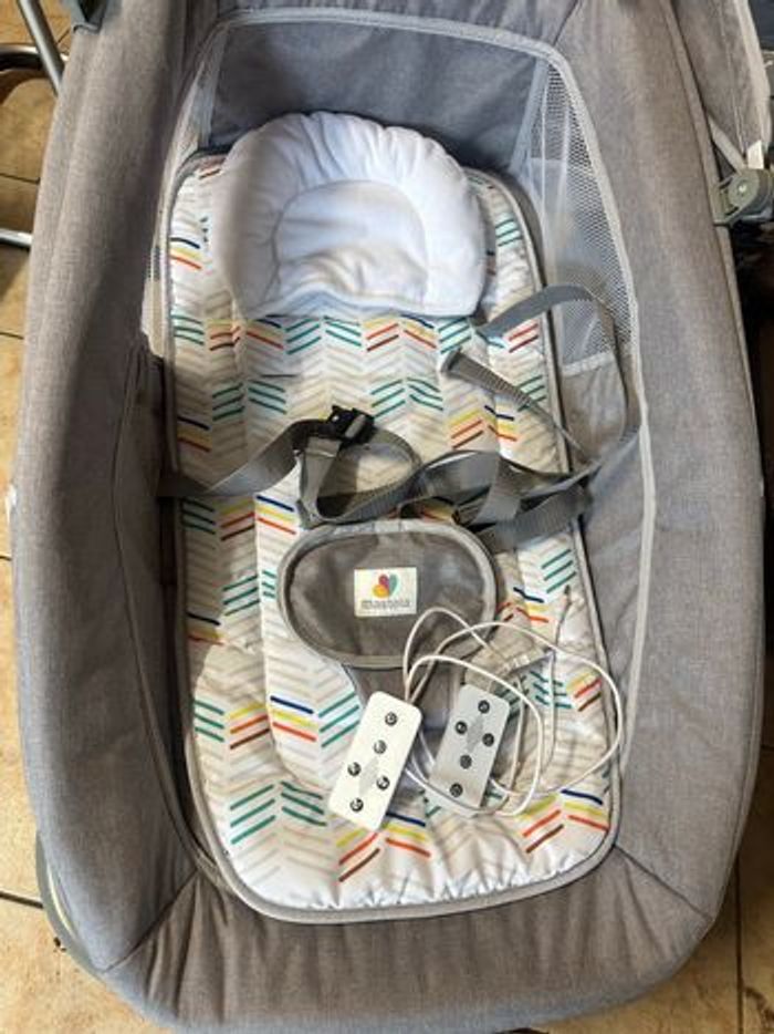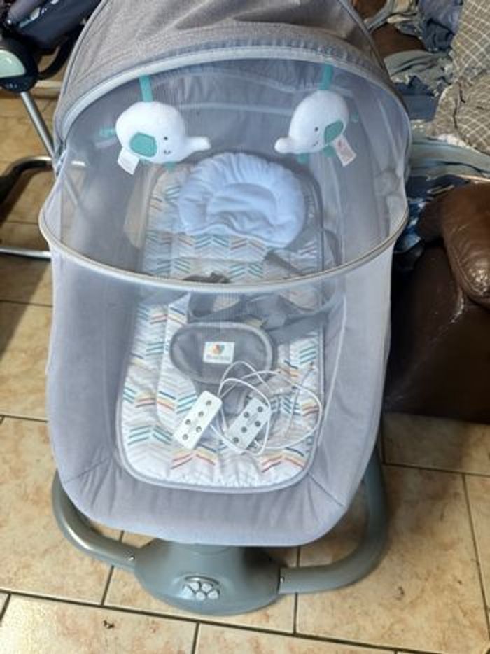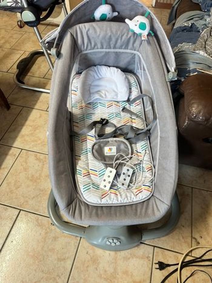 Vend balancelle électrique en bon état Utilisable jusqu'au 2-3 ans de l'enfant Juste un petit trou sur la moustiquaire mais ne gêne e pas du tout Descriptif complet de la balancelle en photo