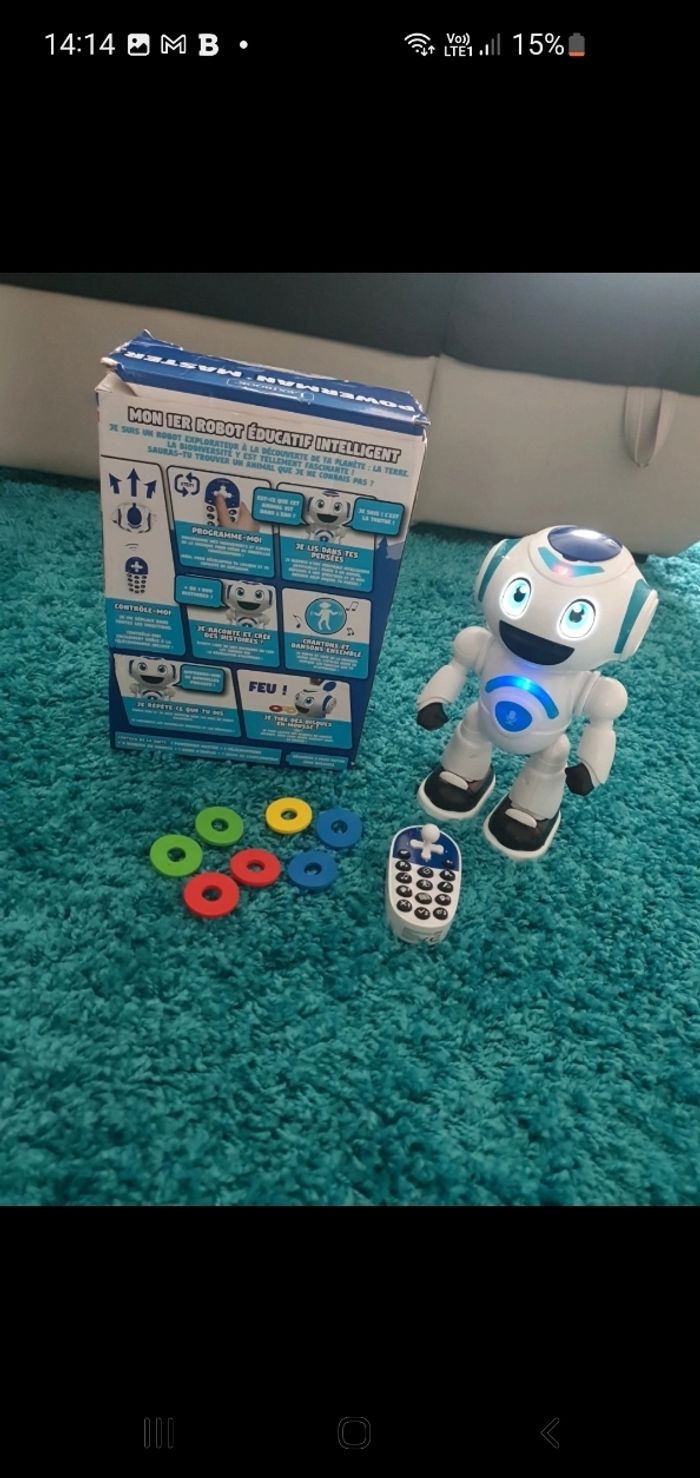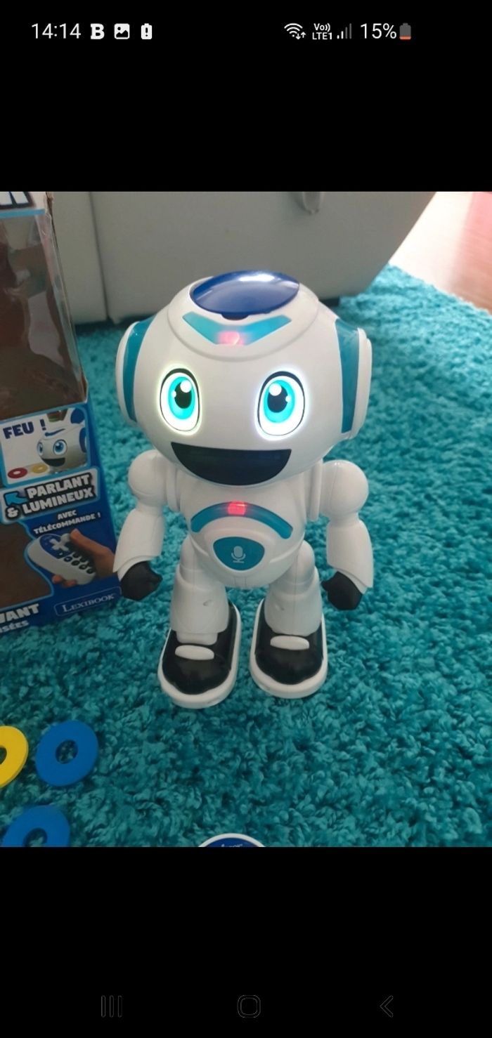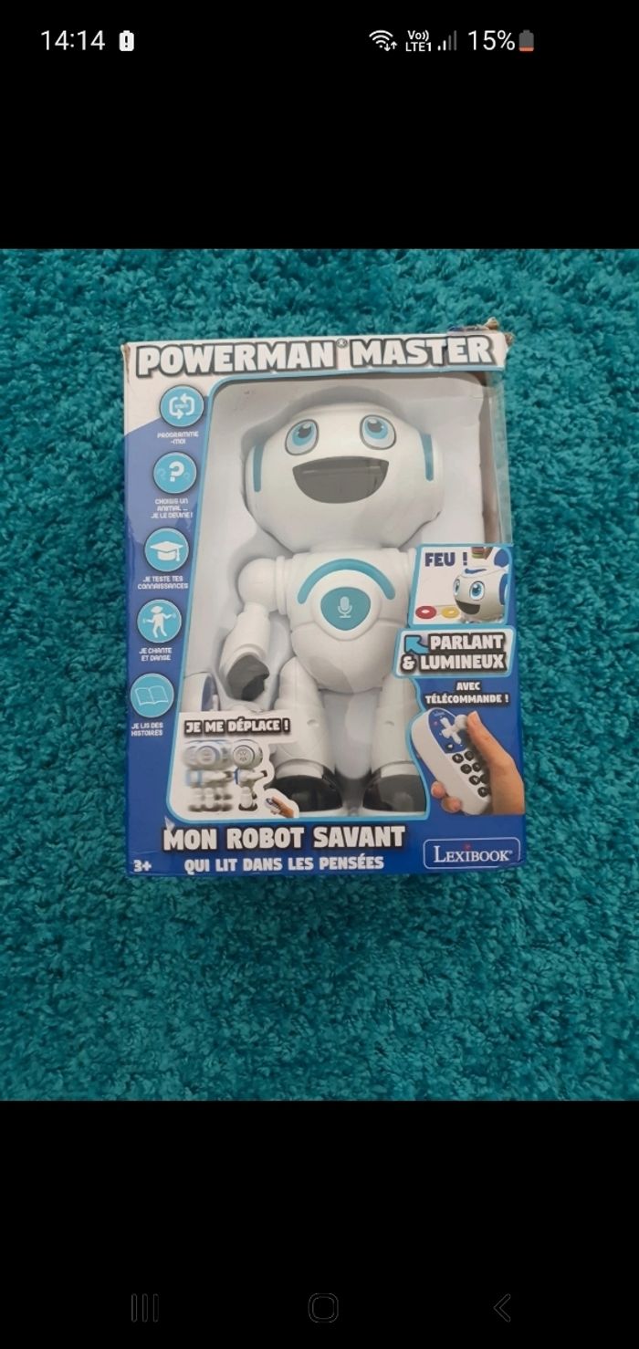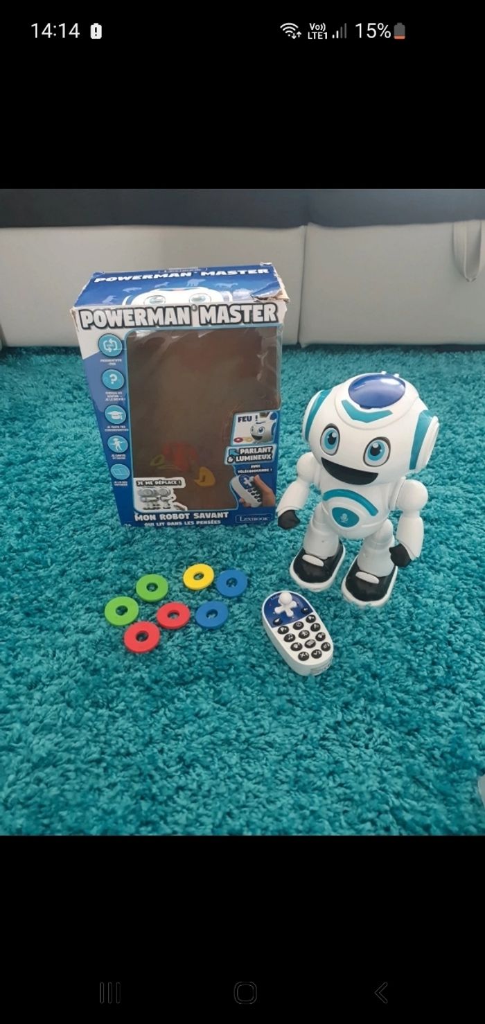 Vends robot enfant lexibook Powerman master lumineux et parlant avec 7disques(il en manque 3)pour la somme de 20euros.