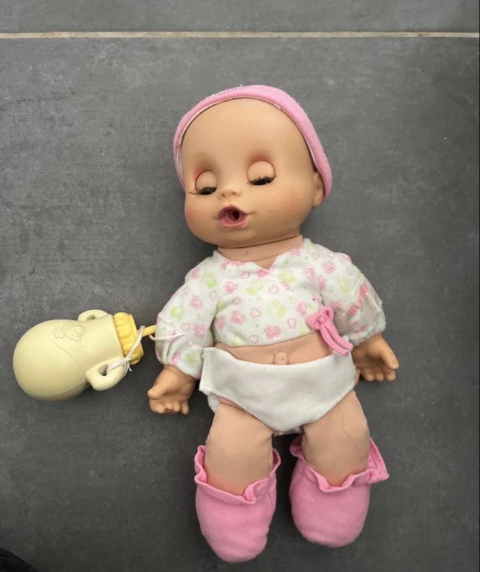 Poupée Ouvre et ferme les yeux en tournant le biberon dans sa bouche