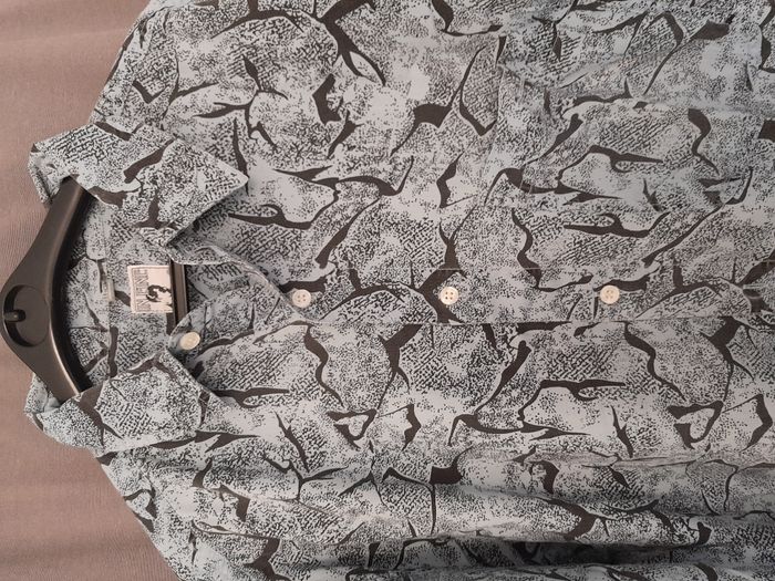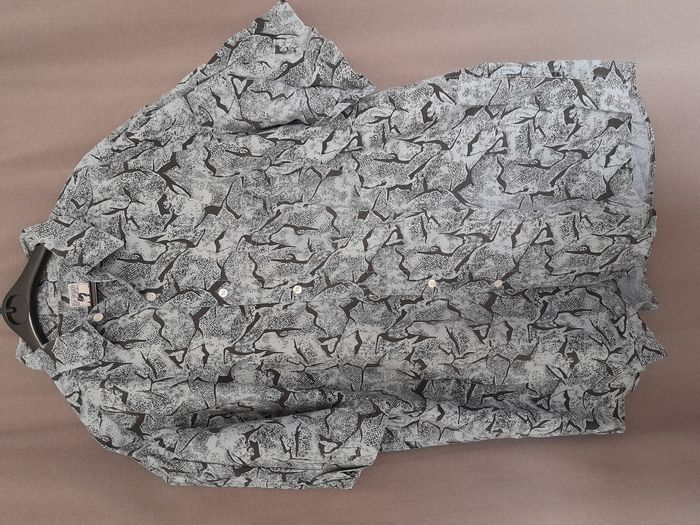 Chemise, imprimé, manche courte, poche sur poitrine avec bouton, attache bouton, de forme arrondie sur le bas Longueur : 84cm Aiss / Aiss : 69cm Matière : 100 % Coton Marque : In Fine