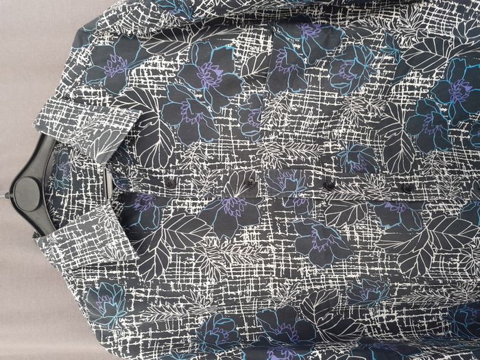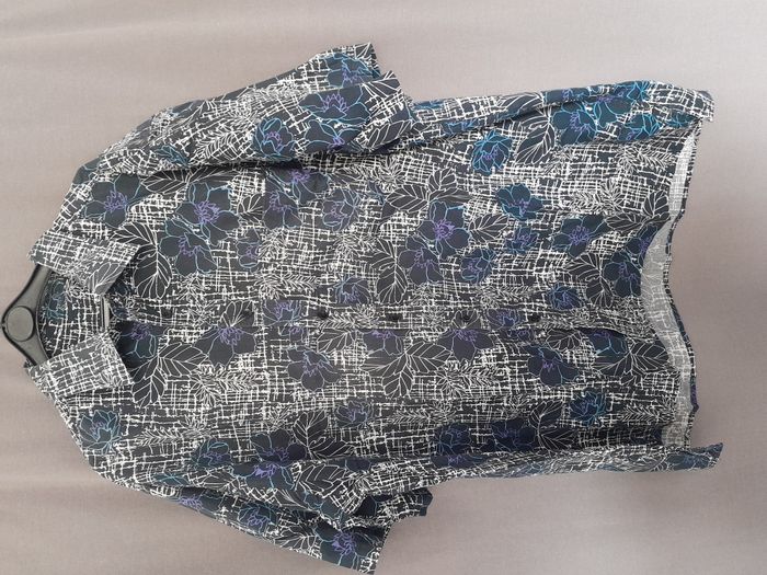 Chemise, imprimé, manche courte, bouton sur le col, double poche sur poitrine, attache bouton, de forme arrondie sur le bas Longueur : 83cm Aiss / Aiss : 70cm Matière : 100 % Coton Marque : Platinum