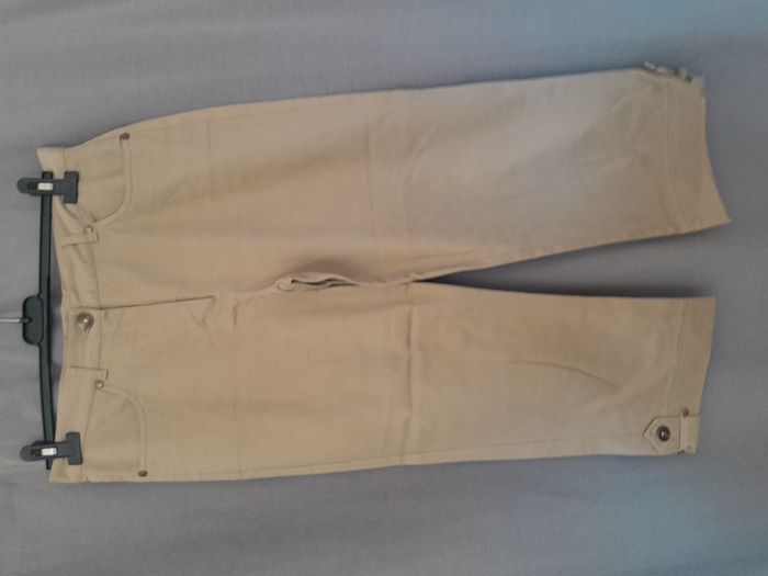 Pantacourt, 4 poche, bouton en déco sur le bas Longueur : 81cm Taille en cm : 40 Matière : 98 % Coton, 2 % Elasthanne Marque : PUNT ROMA