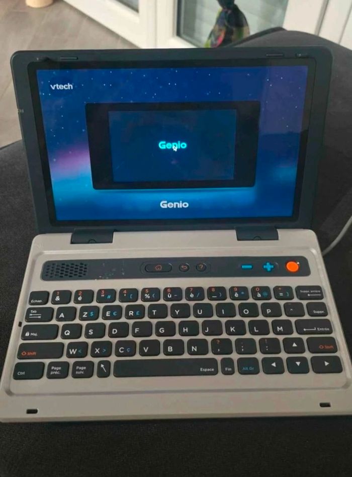 Fonctionne parfaitement Genio, mon premier vrai ordi ! - 5 - 12 ans Genio est le premier ordinateur de l’enfant, spécialement pensé pour lui. Il reprend les codes des vrais ordinateurs : interface, clavier AZERTY, souris, écran 5’’, mémoire de 8Go extensible via carte micro-SD (non incluse