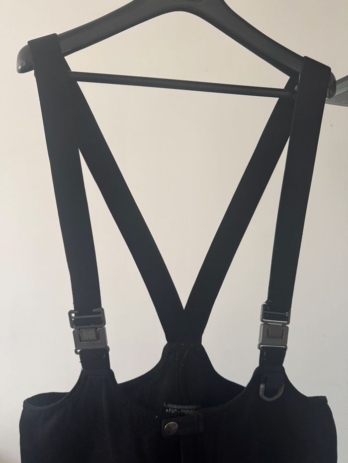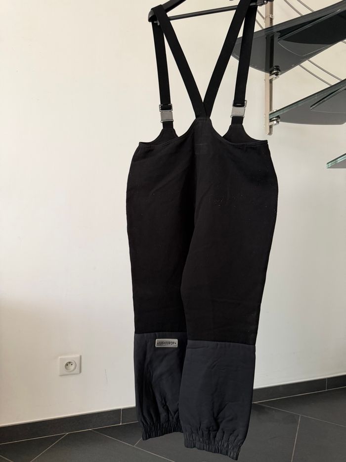 Pantalon de ski à bretelles . Se ferme avec bouton et fermeture éclair . Quelque traces d’usure comme des bouloches au niveaux des cuisses/ hanches Taille 48