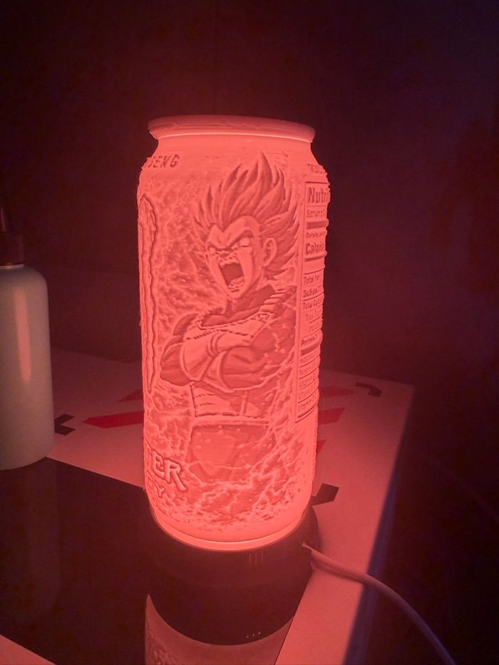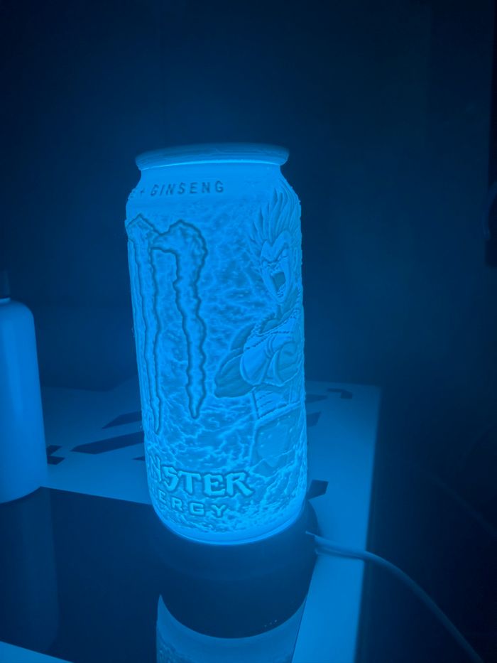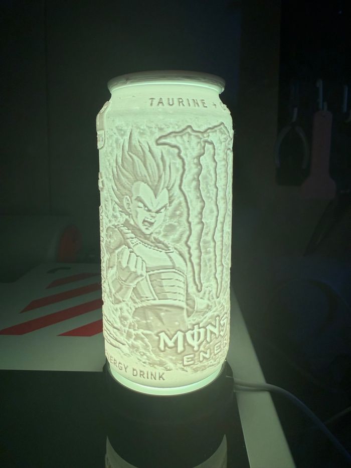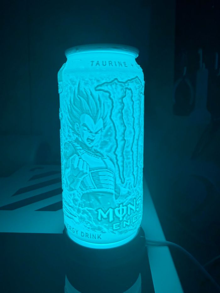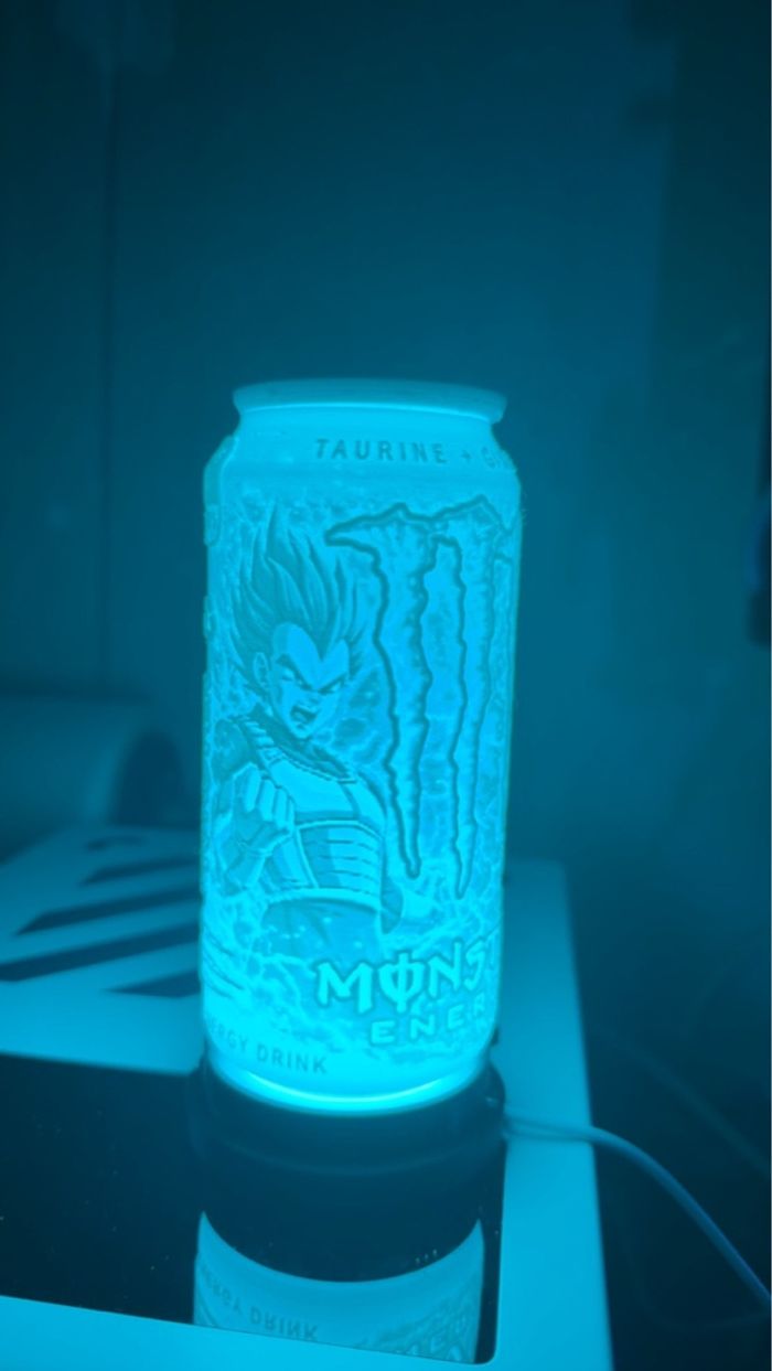 Neuf Fait par mes soins Change de couleurs ou couleurs fixe Dimension d’une canette monster #veilleuse #dragonballz #vegeta