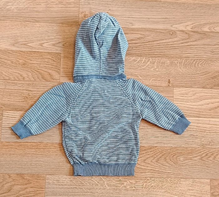 Pull à capuche bébé gris rayé avec 4 boutons pression sur le devant 😁 Pour plus d'articles vous pouvez cliquer sur mon profil 🤓