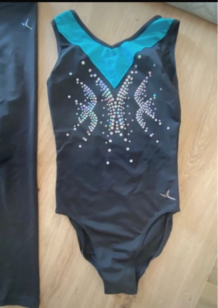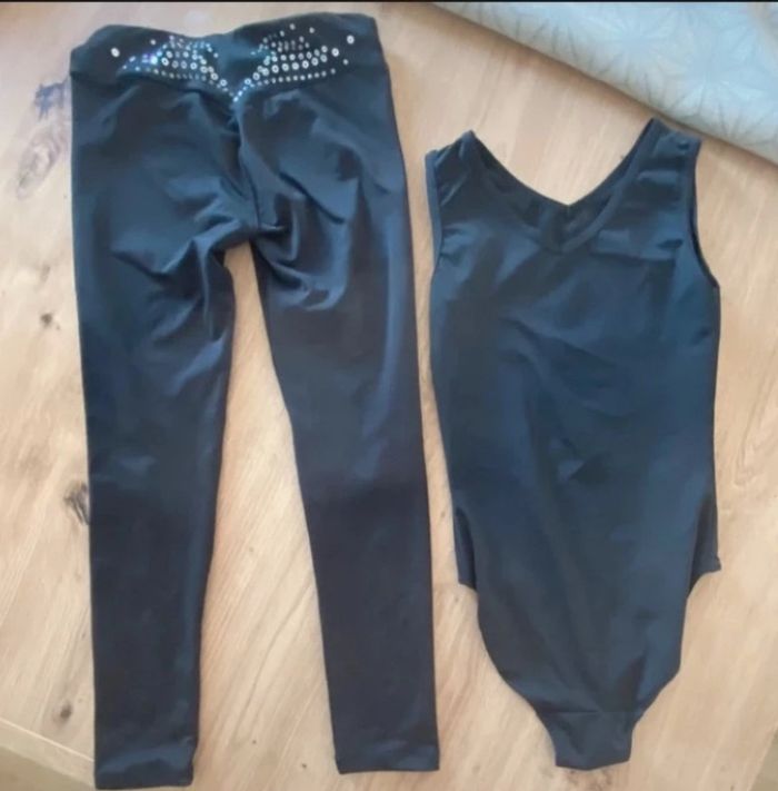 Ensemble comprenant 1 legging noir à strass et 1 justaucorps turquoise taille 6 ans
