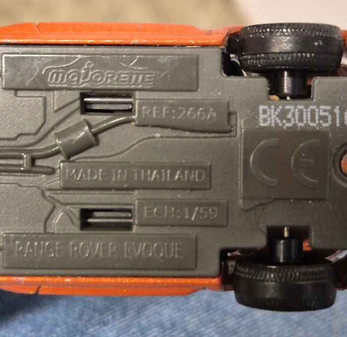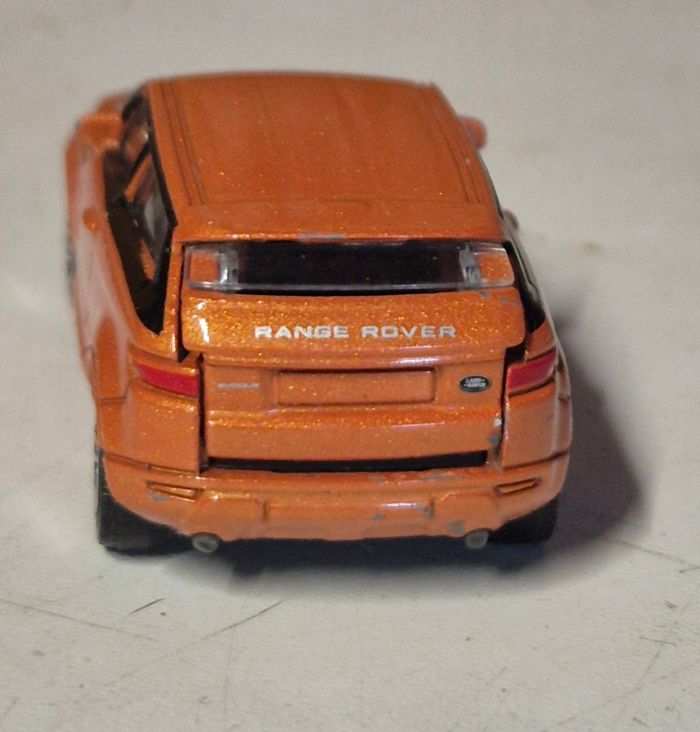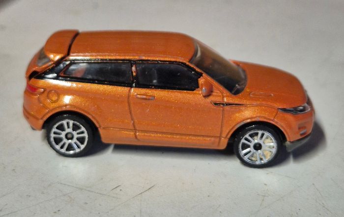 Majorette Range Rover Evoque, référence 266A, échelle 1/59. Carrosserie métal orange métallisé, intérieur noir, jantes sport, détails avant et arrière fidèles au modèle réel. Châssis estampillé Majorette, fabrication Thaïlande. Bon état général : petites usures de peinture Vendu tel que présenté sur les photos. majorette #rangerover #evoque #voitureminiature #diecast #collectionminiature #suvminiature #modellismo #collezionismo #veicolimodellini