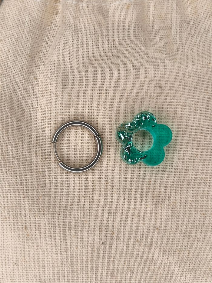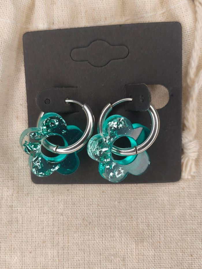 Boucle d'oreille en résine epoxy et anneau en acier inoxydable