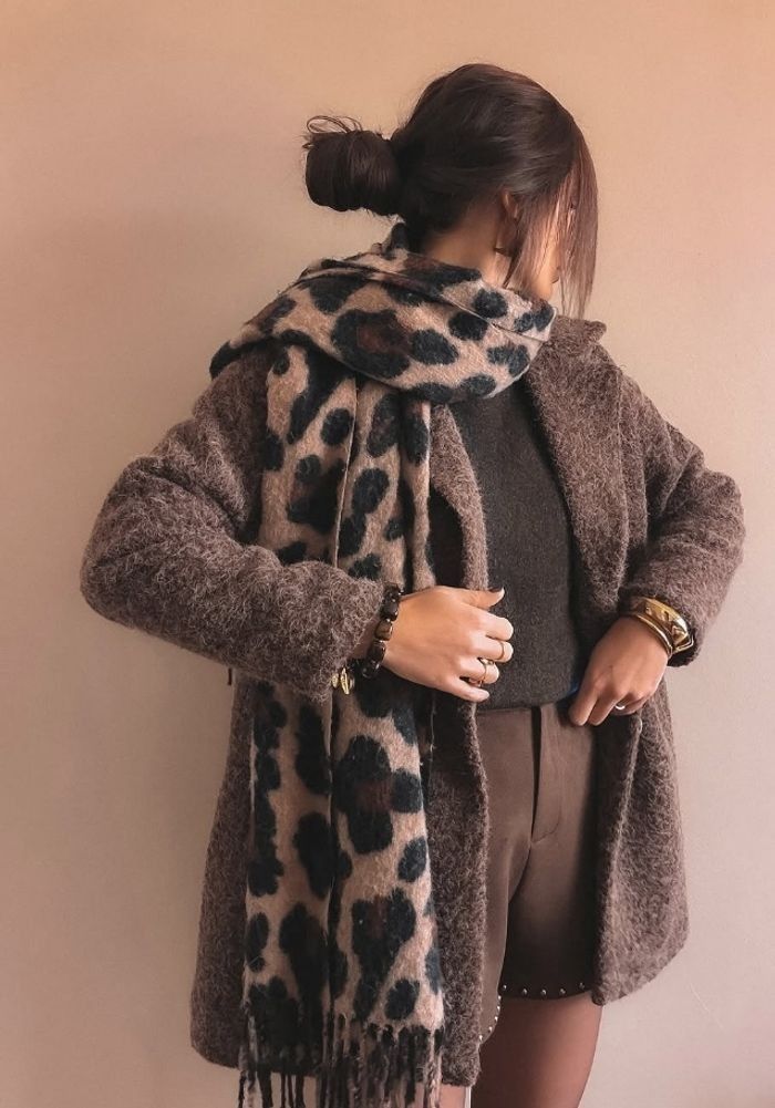 Écharpe léopard tendance avec laine véritable  - photo numéro 1