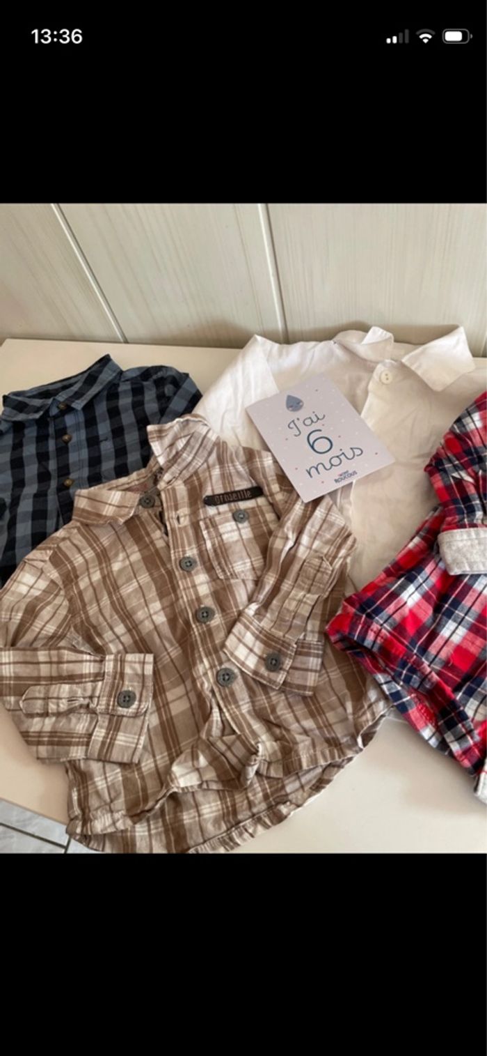 Bonjour je vends lot de 4 chemises à manches longues garçon taille 6 mois en très bon état de toute marque