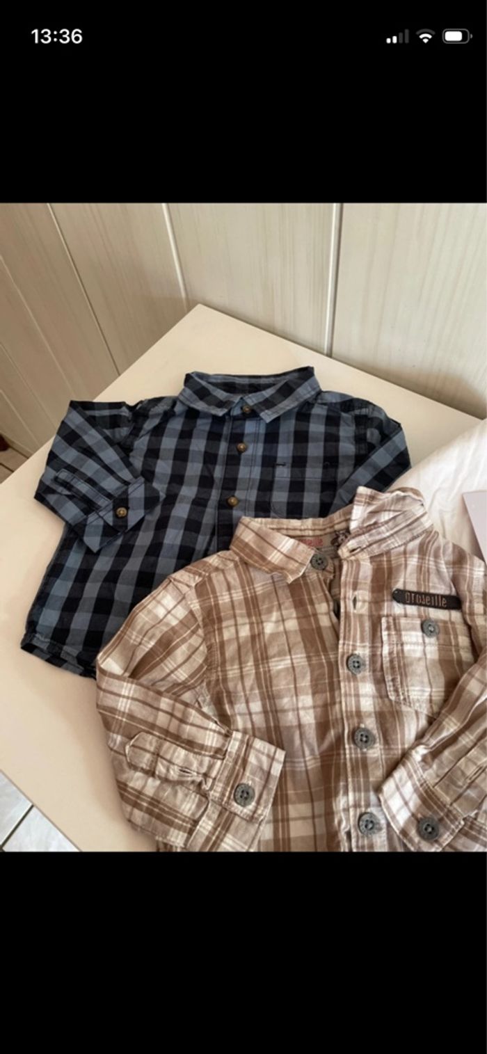 Lot 2 chemises manches longues 18 mois