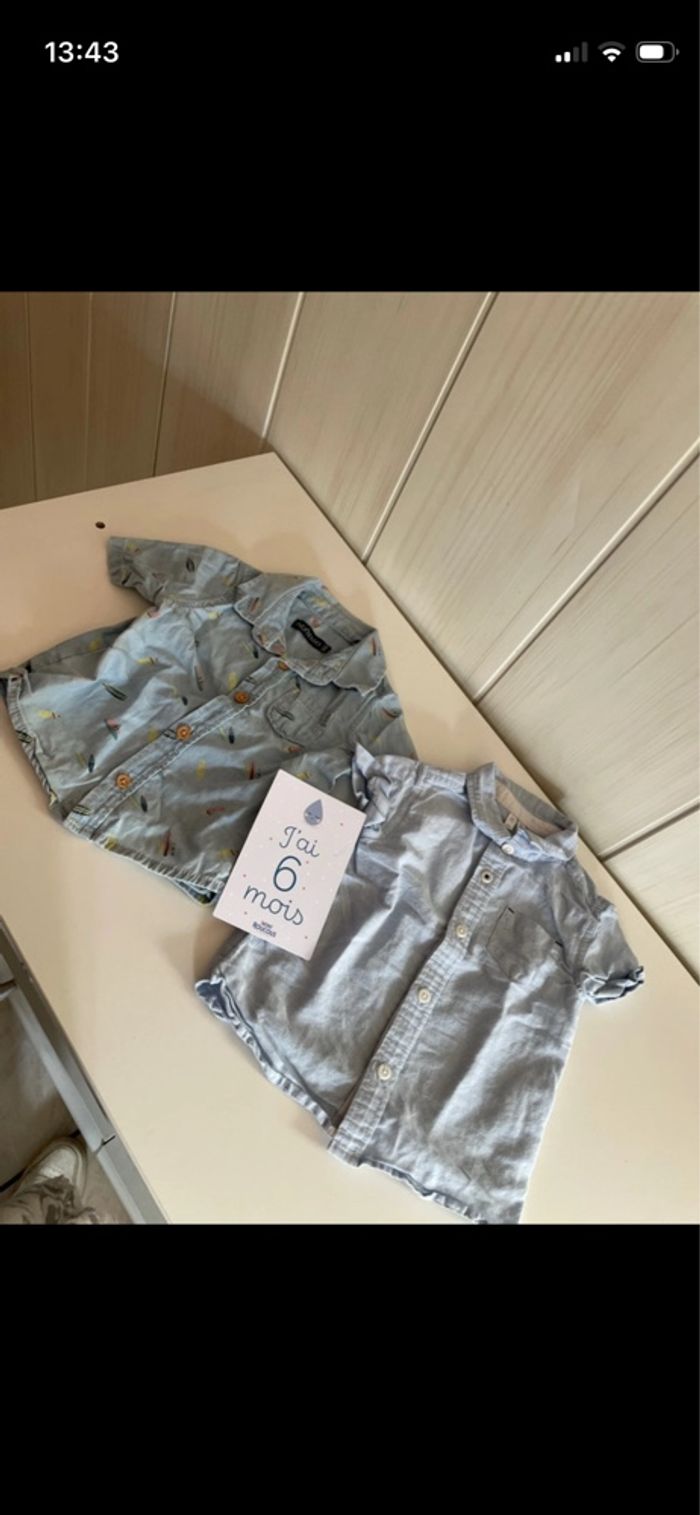 Bonjour je vends lot de 2 chemises à manches courtes en très bon état taille 6 mois