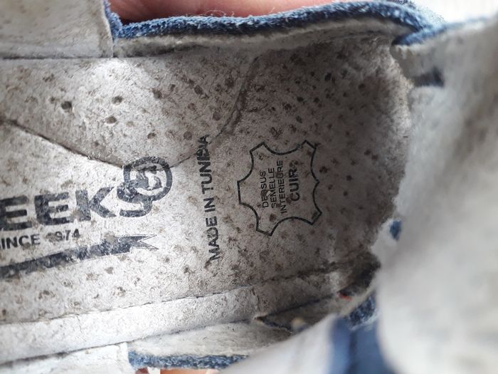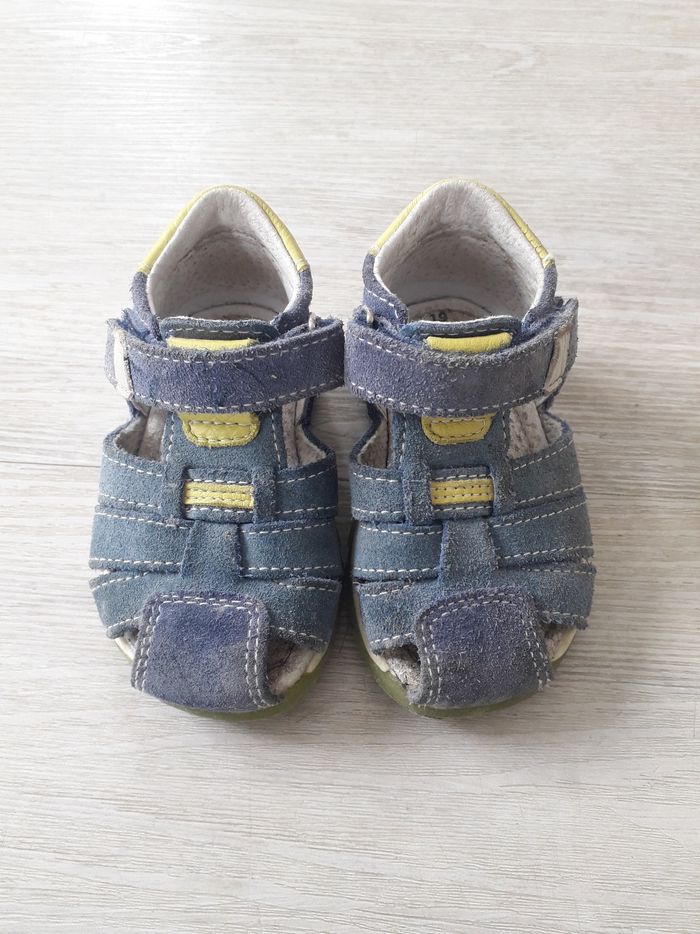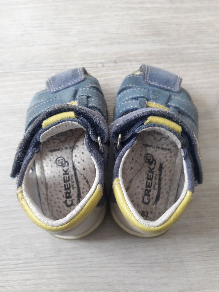 Sandales en cuir en très bon état de la marque Creeks pointure 19. Elles se ferment avec un scratch. Elles ont été très peu portées.
