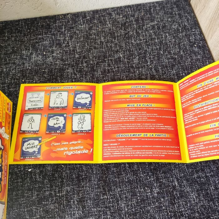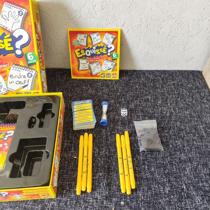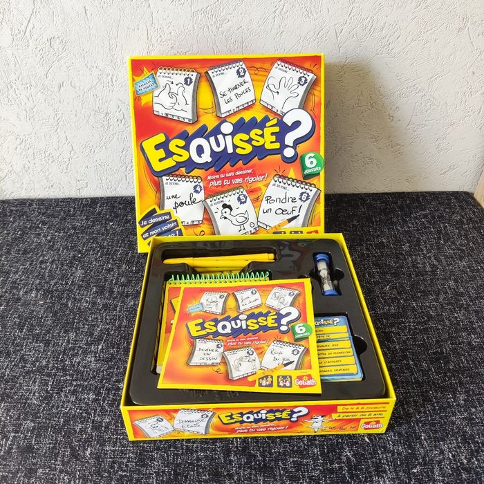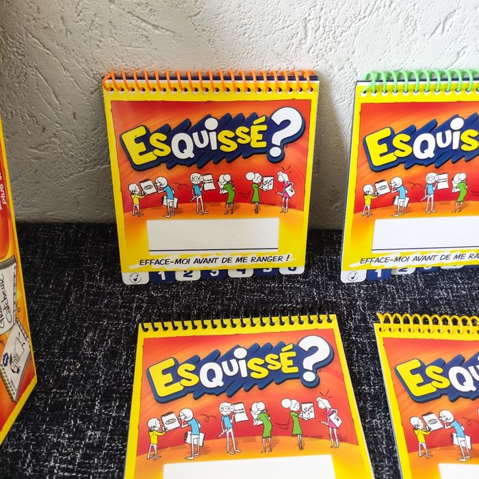 🎨 Jeu de société Esquissé ? ⬇️ À dérouler s'il vous plaît ⬇️ 📦 État : De petites marques superficielles liées au rangement peuvent être visibles sur la boîte. Utilisé une seule fois pour essayer. Certains carnets ont des traces de stylos ✅ Envoi Exclusivement Mondial Relay sous 24h 👥 Nombre de joueurs : 4 à 6 joueurs 🌍 Langue : Français 👦 Âge recommandé : À partir de 8 ans ⏳ Durée d’une partie : Environ 20 minutes 💡 Contenu de la boîte : ✅ 60 cartes recto-verso (soit 840 mots) ✅ 6 carnets effaçables ✅ 6 stylos effaçables ✅ 6 chiffons ✅ 1 sablier de 60 secondes ✅ 1 règle du jeu 🚭 Maison Non Fumeurs & Sans Animaux 🐾 🔍 Principe du jeu : Un joueur pioche un mot et le dessine dans son carnet, puis passe le carnet au joueur suivant qui doit deviner le dessin, et ainsi de suite... Les quiproquos s’enchaînent jusqu’à des résultats hilarants ! Un mélange de téléphone arabe et de Pictionary. 🚛 Emballage soigné garanti 🛡️ #jeudesociété #Esquissé #jeuambiance #dessin #famille #jeucomplet #cadeaurigolo #occasioncommeNeuf #telephonearabe #pictionaryfun