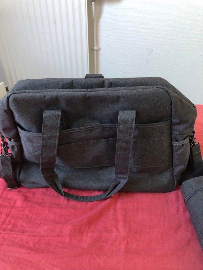 Lot composé d’un sac à langer, une chancelière et un coussin