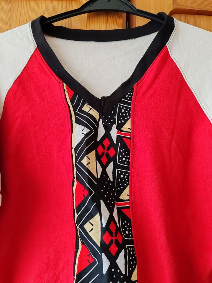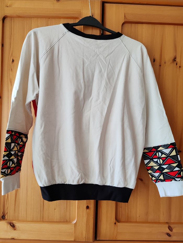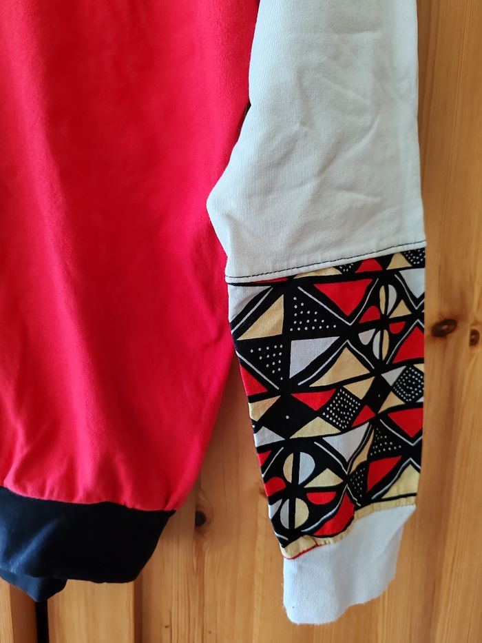 Sweat maison bi matière wax et jersey, manches longues, col v.