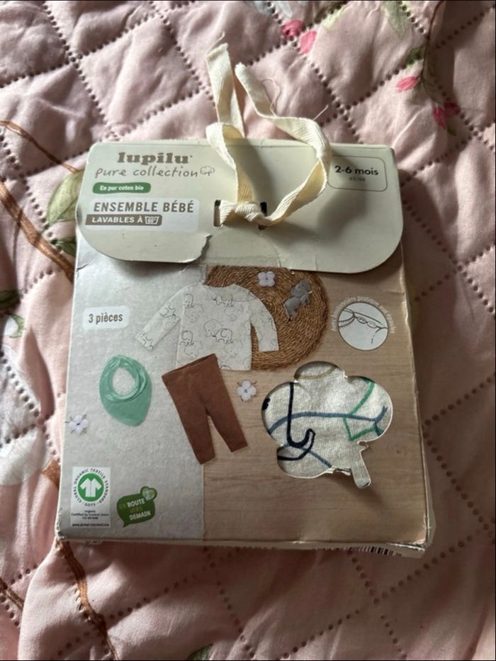Neuf jamais ouvert. Pull , pantalon et tour de coup 2-6mois Lupilu