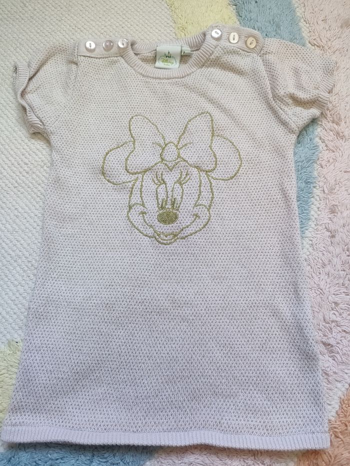 Robe maille Disney Minnie Disney baby 12 mois Beige rosé à fils dorés Très bon état