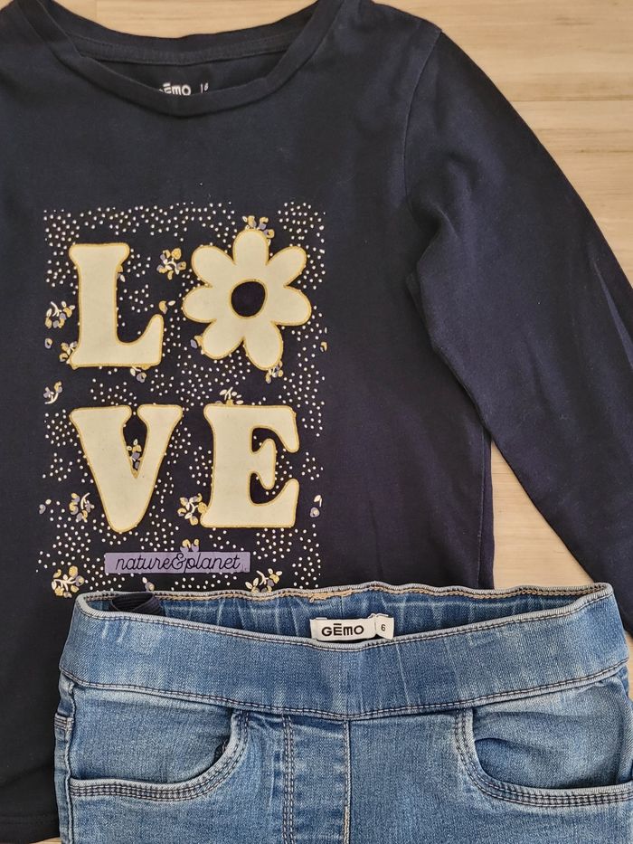 Jeans et t-shirt manches longues, fille 6 ans, marque Gémo.  - photo numéro 1
