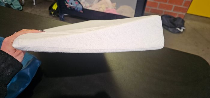 Coussin triangle parfait pour relever le matelas de bebe. Avec alaise de protection a pression Marque doomoo Jamais servie Sans tache.