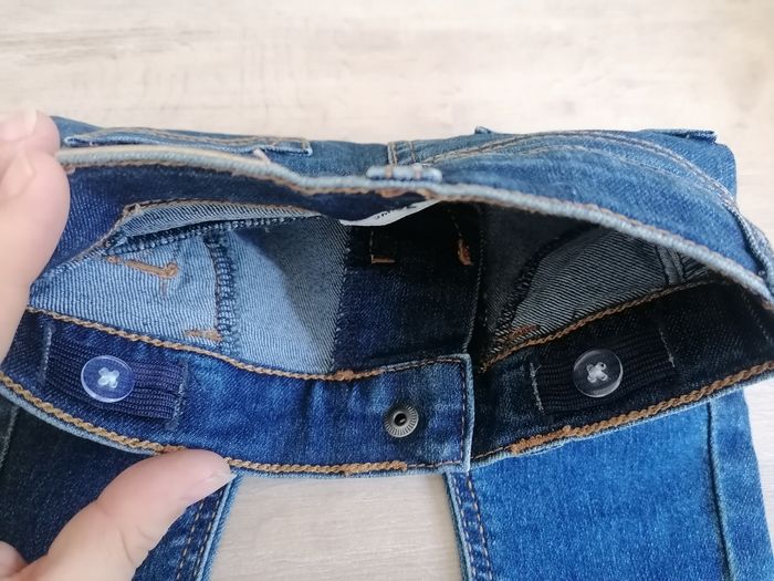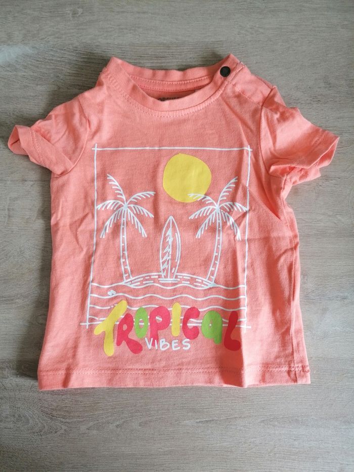 Ensemble composé d'un t-shirt à manches courtes et d'un jean skinny. 3 mois (59-60 cm). T-shirt à manches courtes Orchestra. Corail avec dessin coloré sur le devant. 2 petits boutons pressions (dont 1 caché) sur le côté du cou. 100% coton. En très bon état. Jean skinny bleu marine Tape à l'oeil. Bouton pression à la taille. Taille réglable par des boutons intérieurs. Fausses poches à la taille et 2 poches sur les fesses. 80% coton, 18,5% polyester, 1,5% elasthane. Totalement neuf, jamais porté, juste lavé.