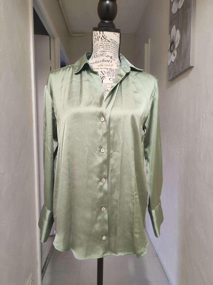 Chemisier satiné kaki clair Zara taille S-M - photo numéro 2