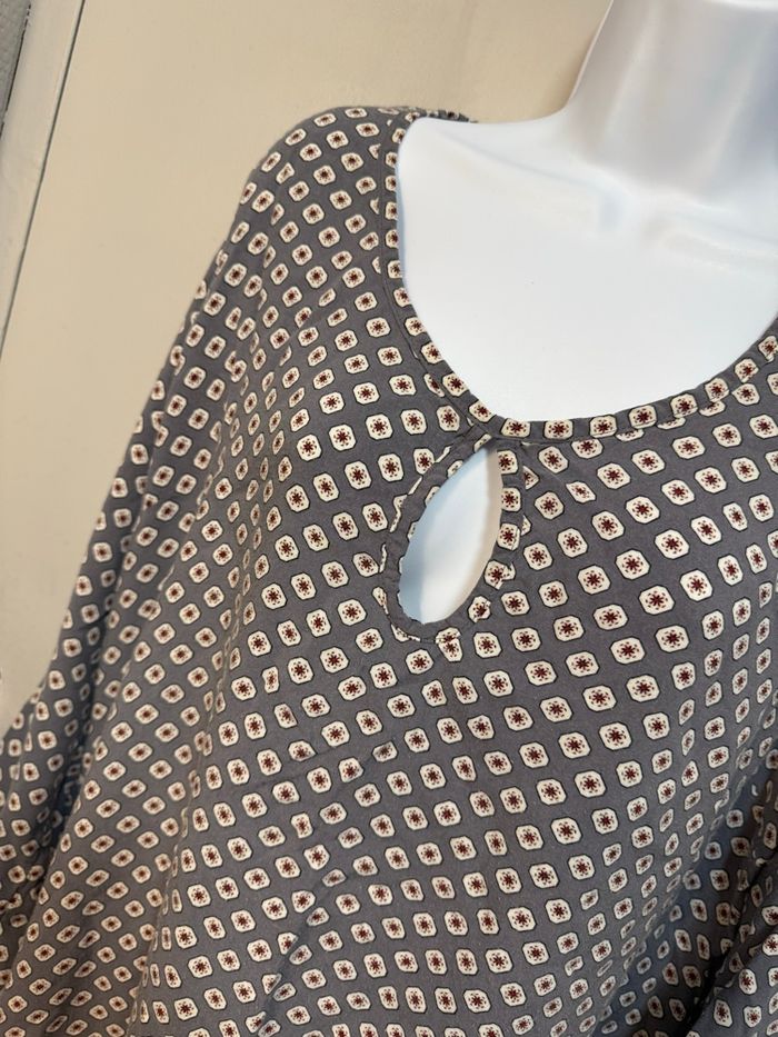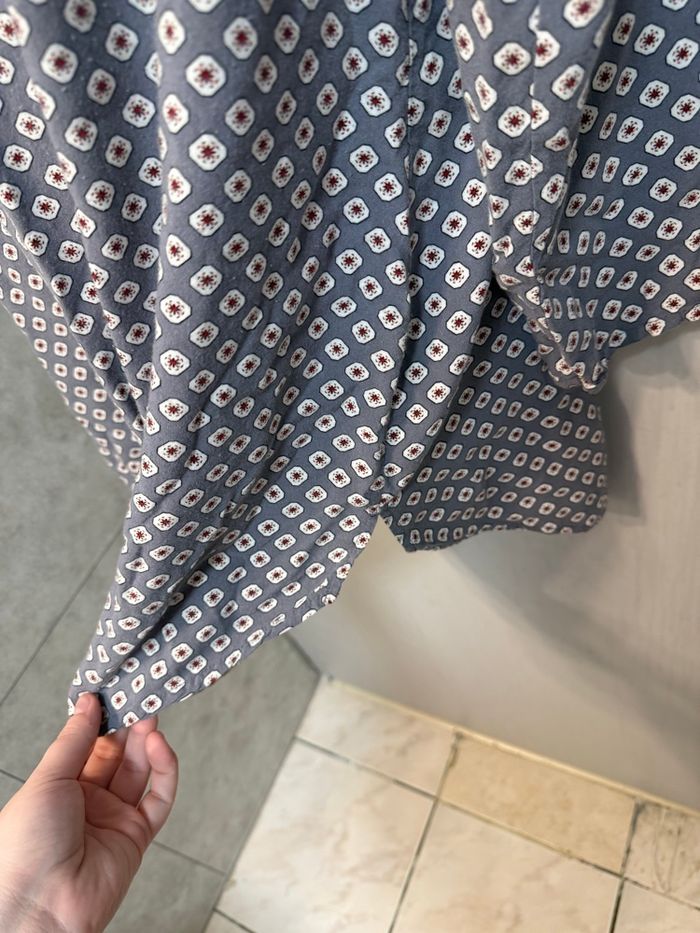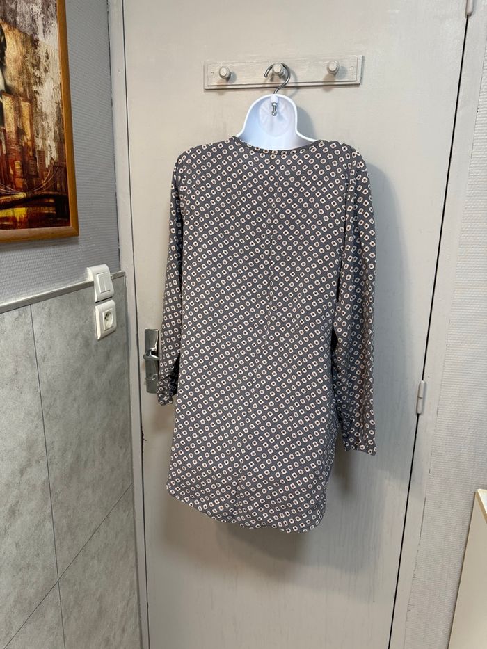 Peu porté Épaule à épaule : 44cm Aisselle à aisselle : 60cm Bas du vêtement mais avant l’arrondi qui ouvre le haut en bas : 61cm Taille : 56cm Longueur : 80cm