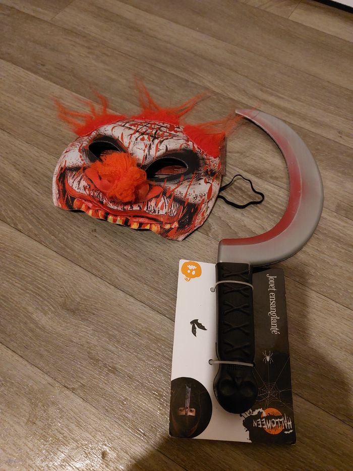 Masque clown avec perruque neuf et cisaille neuf