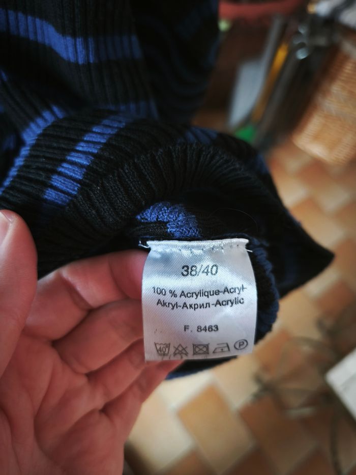 2 pull coll jusqu'au début du cou Le noir est une taille XS Le noir et bleu taille 38 Lot dissociable !