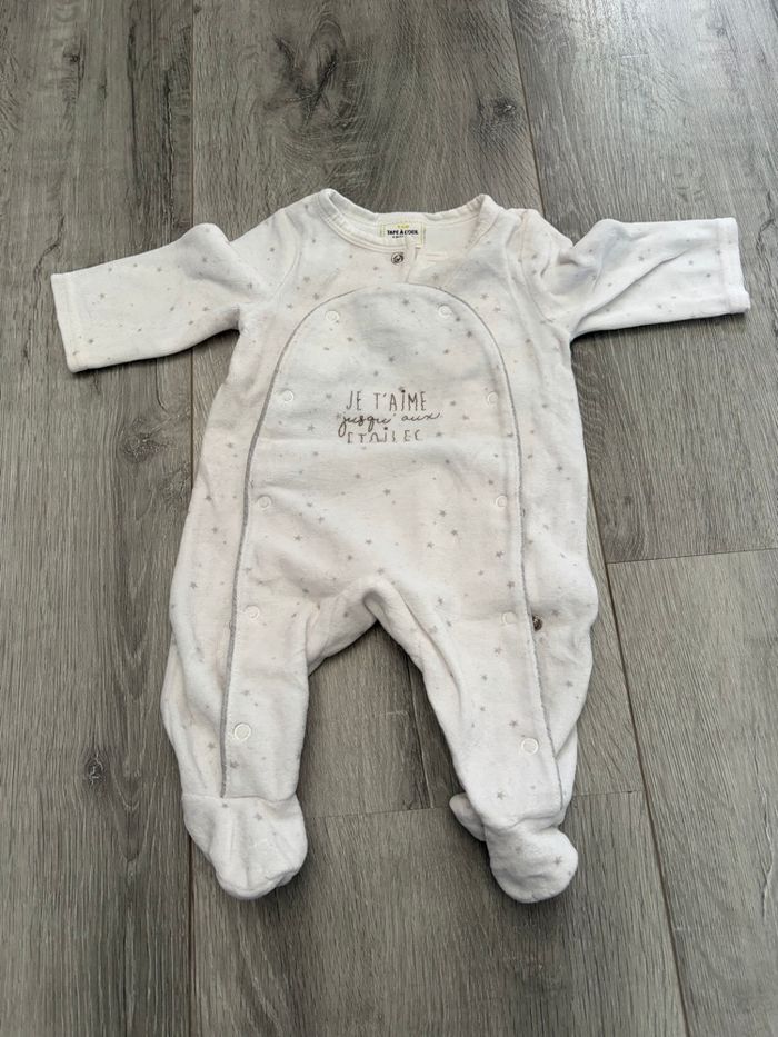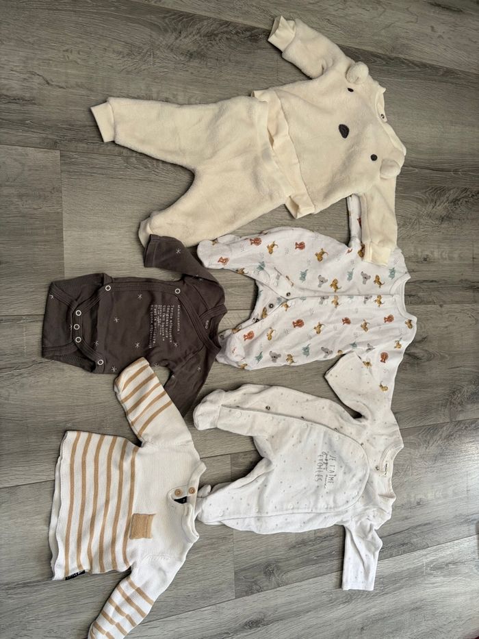 Lot de vêtements 1 mois mixte Comprend 2 pyjamas ouverture devant, 1 body ouverture devant, 1 ensemble polaire tout doux et un pull style marinière