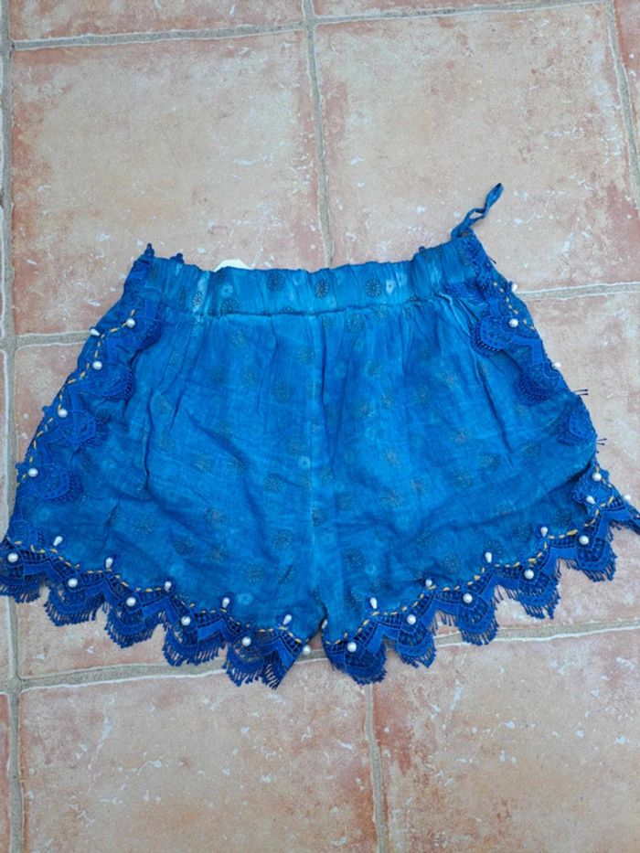 Short bleu dentelle et perle femme M neuf étiqueté - photo numéro 2