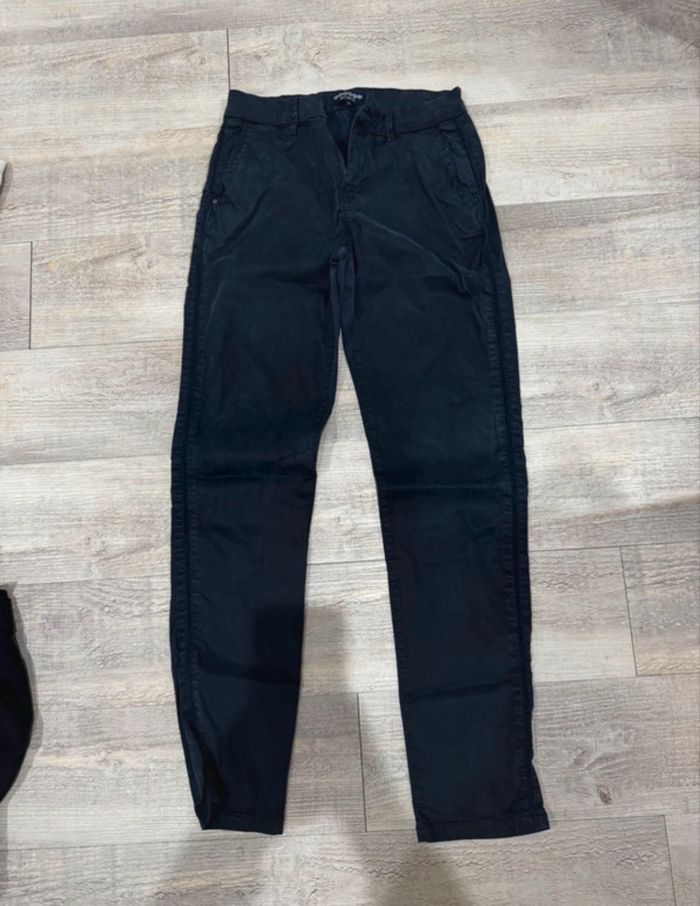 Pantalon style chino de la marque Bonobo de couleur bleu marine, c’est un intemporel Taille 34