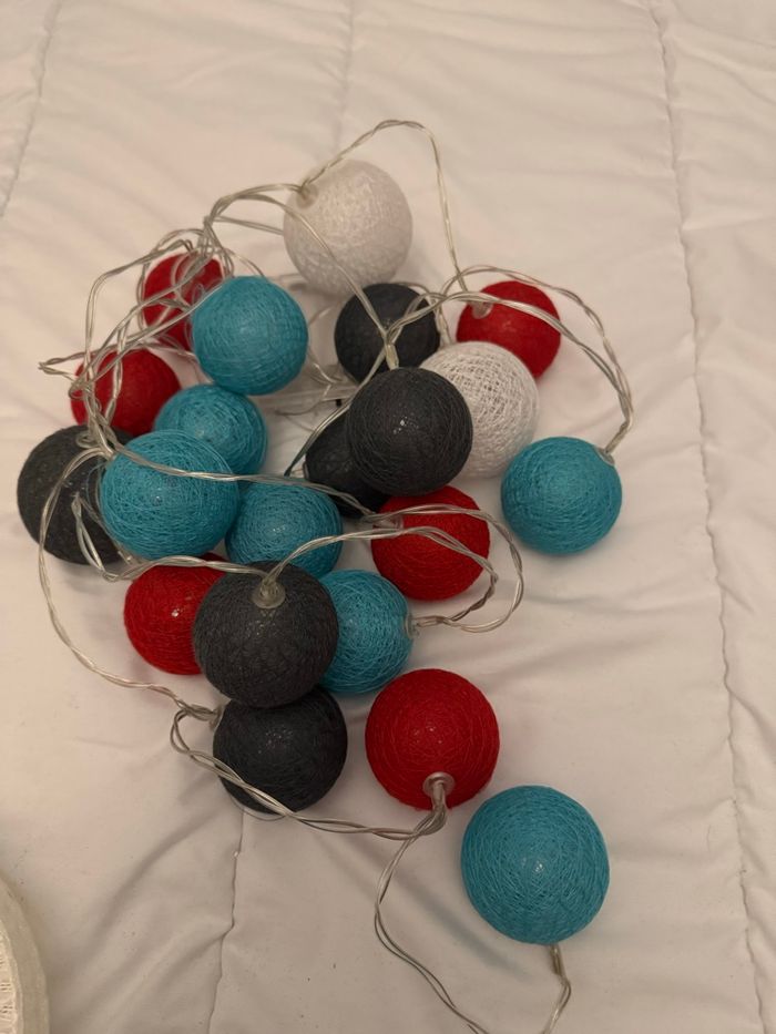Bonjour Vends lot guirlandes lumineuses multicolores Il y en a 3 exactement en tout Les 2 autres sont de couleur blanche grise Et l autre de couleur rose grise blanche