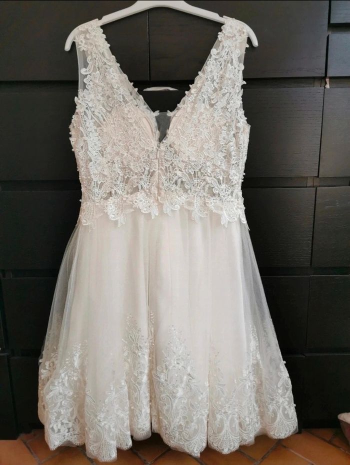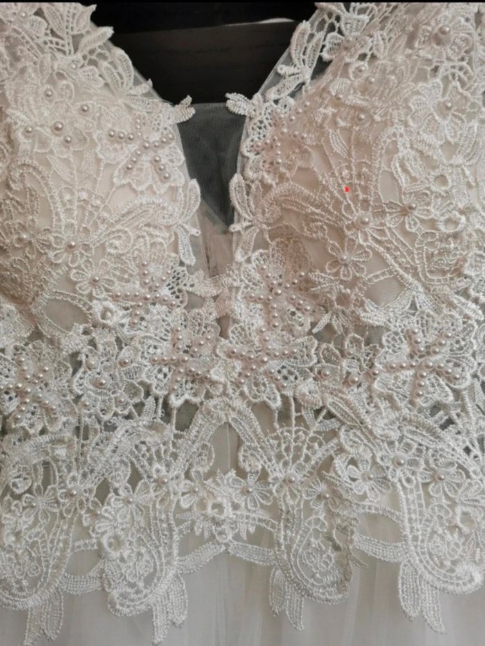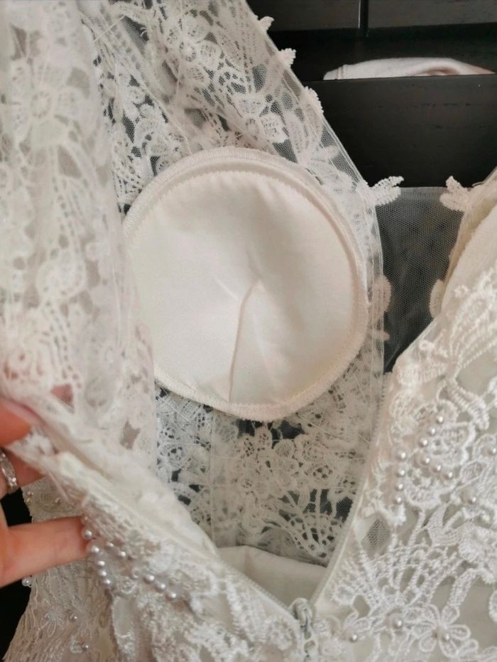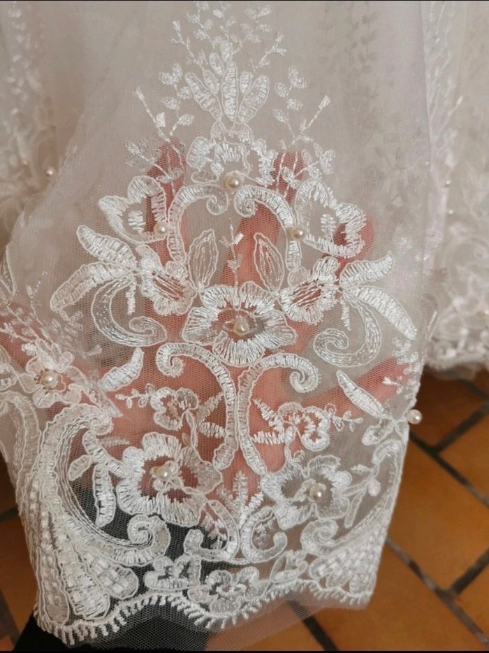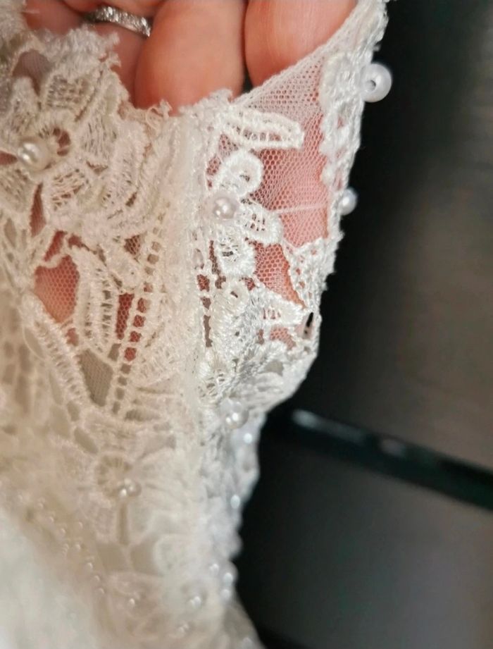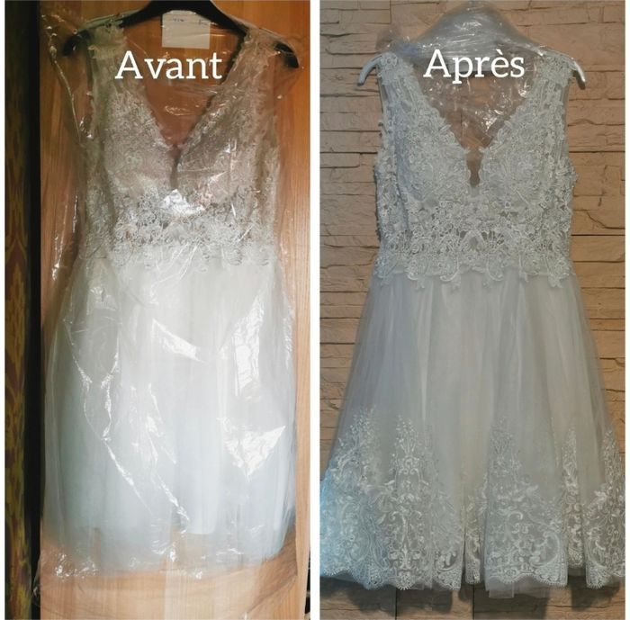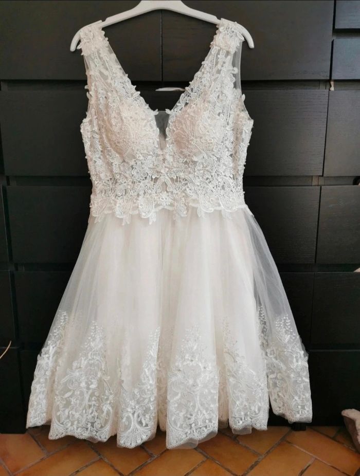 Merci de bien lire le descriptif svp Envois uniquement avec mondial relais mais je préfère une remise en main sur Beloeil, Mons, Ath, Peruwelz, Saint Amand les eaux ou Valenciennes. Robe qui vient de chez Emel Cérémonie à Chatelet (Charlerois). Je l'aie "customisé" dans le bas car la jupe était simple. J'ai donc ajouté la dentelle et les perles à la main. A l'origine, c'est une taille 40, mais je l'aie réajusté au point rapide sans couper car j'avais perdu du poids entre l'achat et le jour J. Il est donc facile de l'élargir à nouveau en défaisant simplement le fil de maintient. Elle correspond actuellement à un 38 (elle était d'ailleurs encore un peu large même avec l'ajustement). En tout avec la dentelle et les perles que j'ai rajouté, la robe à une valeur totale de 165€ (prix d'achat 110€). Je la laisse partir à 80€ non négociable. Je l'aie portée en 2ieme partie de soirée pour être plus à l'aise. Donc à peine 4 ou 5h. Ni tâches, ni trou. Parfait état. Je la vends à contre cœur, mais elle prend beaucoup de place dans mon armoire car très le jupon est fourni. (ps, pour vous porter chance, sachez que mon mariage est très heureux 😉)