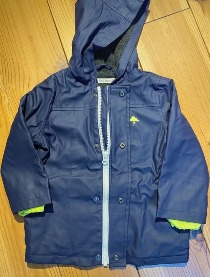 Cire bleu marine doublé en polaire gris, avec détails fluos. A peine porté.