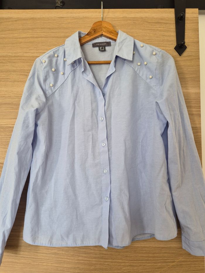 Chemise élégante bleu marine à pointillés pour femme, taille 42