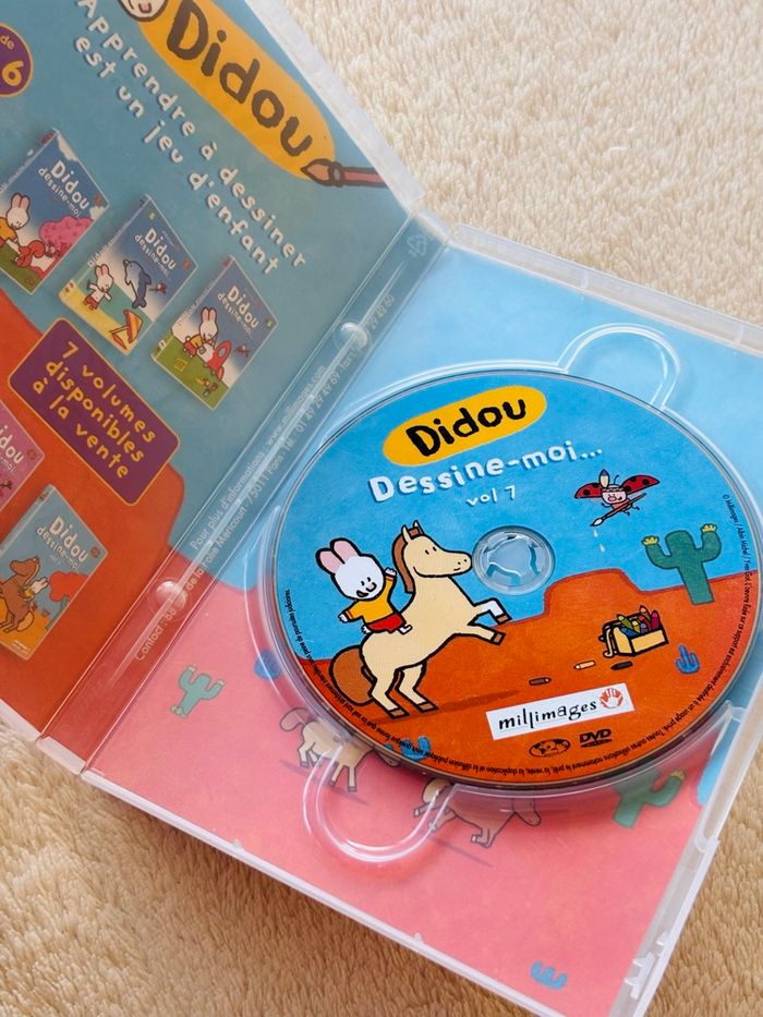DVD Didou dessine-moi un cheval, 10 histoires, Vol 7, durée 70 minutes, langue français/anglais. Millimages De 2 à 6 ans 10 histoires : 1. ...un cheval 2. ...un épouvantail 3. ...un perroquet 4. ...un hippopotame 5. ...une souris 6. ...un bateau de pirates 7. ...un carrosse 8. ...un chat 9. ...un fantôme 10. ...une sorcière *traces d'usure #Didou #dessinemoi