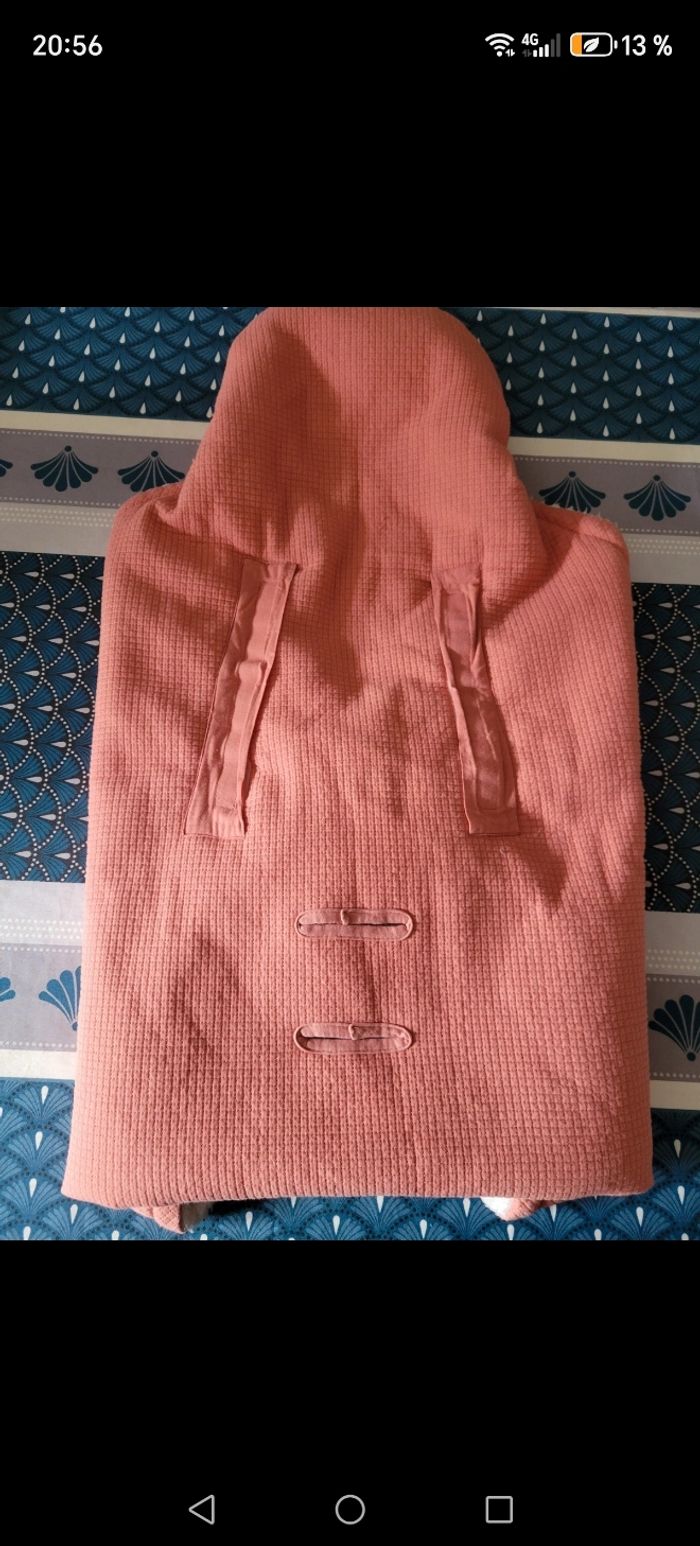 Je vends cette couverture nomade domiva en excellent état, comme neuve. Extérieur en coton et intérieur en sherpa, idéal pour que bébé soit bien au chaud dans son cosi. S'adapte au 3 ou 5 points. Coloris terracolta.