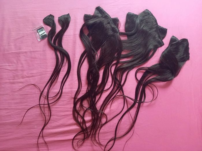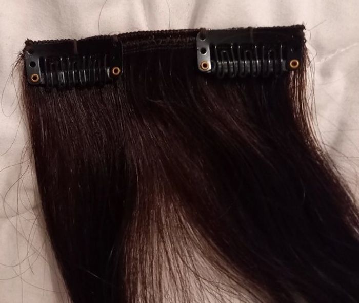 Extension de cheveux au complet avec 4 grand 3 pinces, 2 de 2 pinces, et 2 de 1 pince. Elles sont neuves et n'ont jamais été mise.